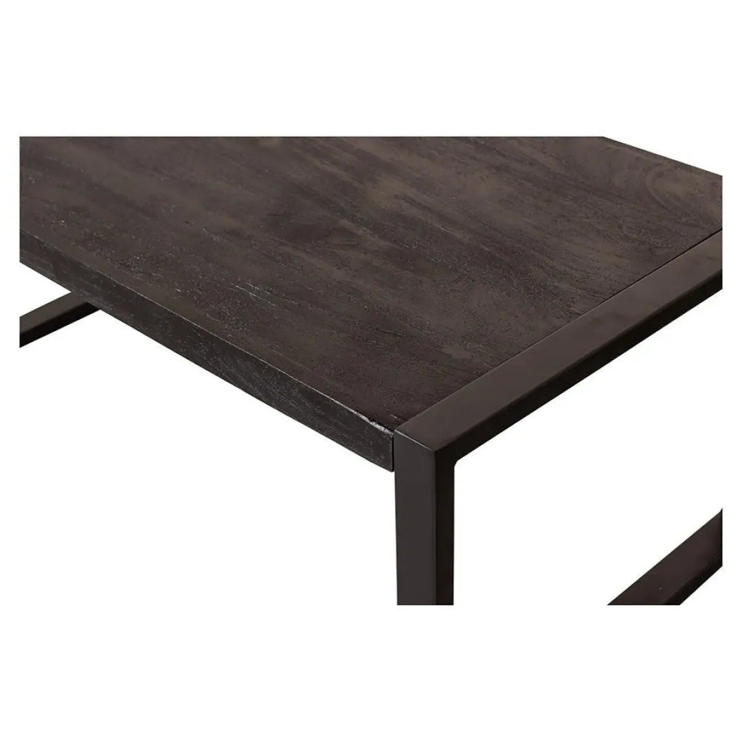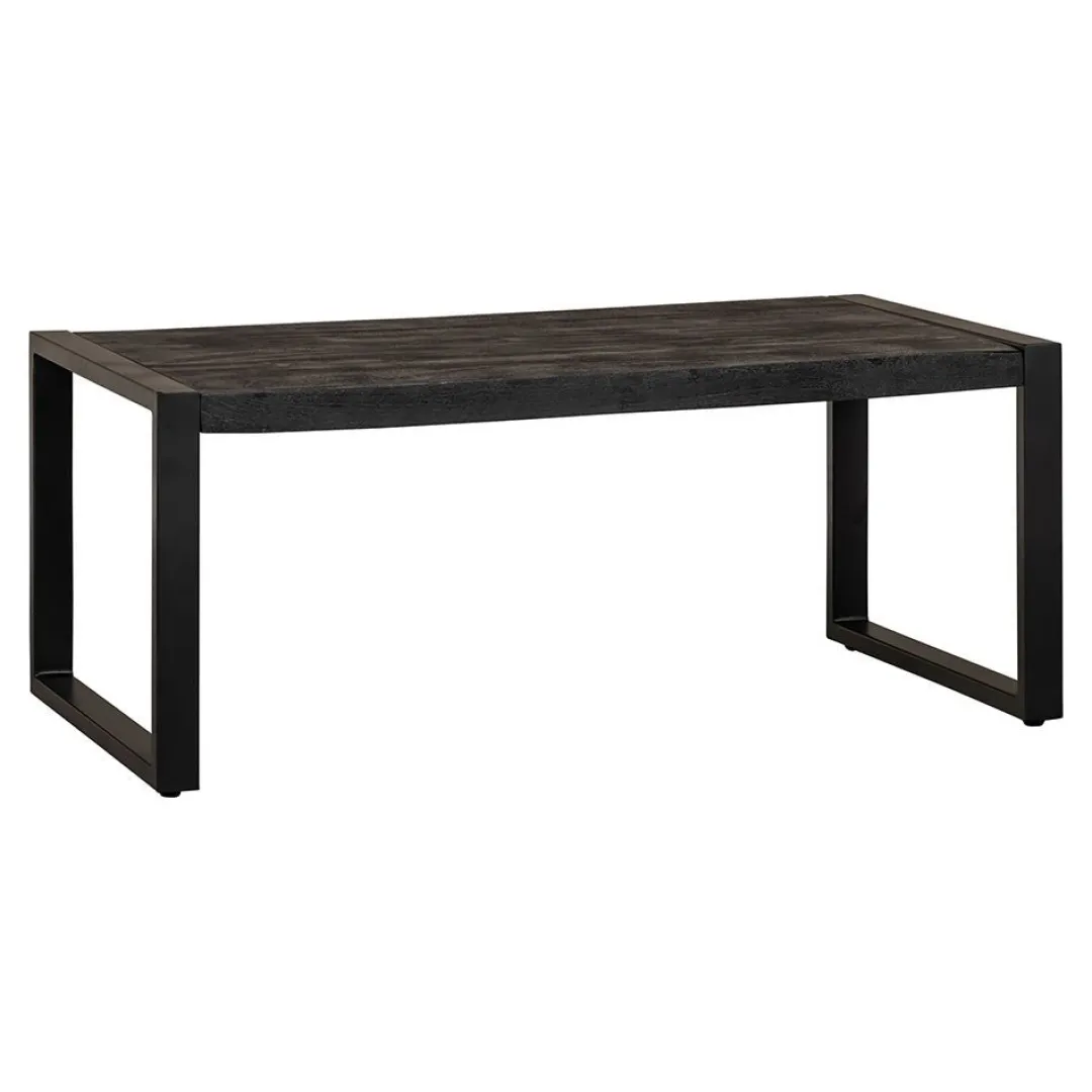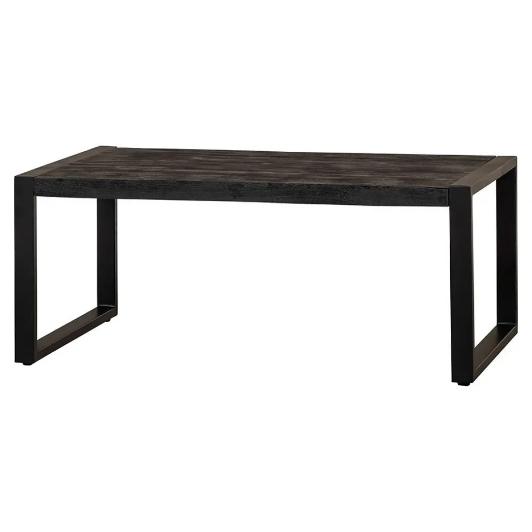 Het mangohout is massief en is eerst gezandstraald, waarna het behandeld wordt met zwarte verfbeits en tenslotte wordt afgewerkt met een donkere, natuurlijke bijenwas om het hout te beschermen tegen vocht, vuiligheid en kringen. De poten zijn gemaakt van zwart gepoedercoat metaal.