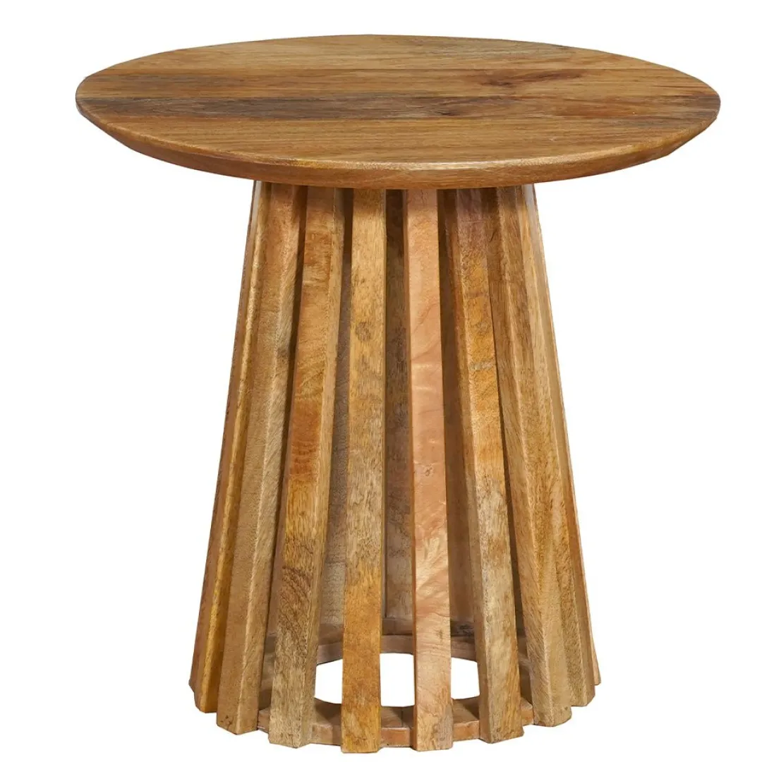 De mangohouten salontafel Ravenna Medium is een stijlvolle aanvulling voor je interieur. De unieke spijlenstructuur geeft de salontafel een moderne uitstraling en voegt karakter toe aan elke ruimte.