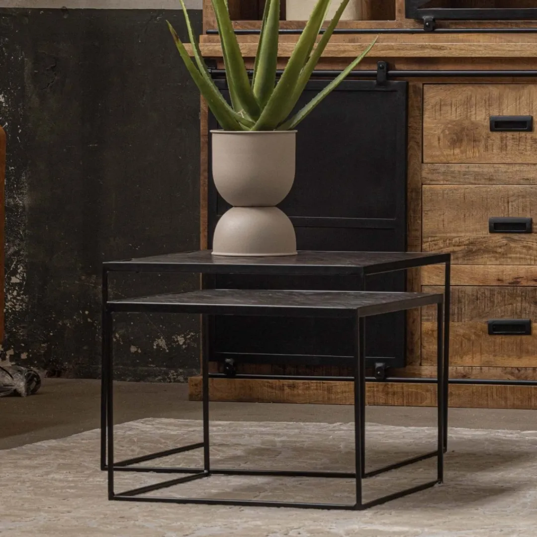De salontafels uit de Dayton-collectie zijn een ware toevoeging aan je interieur. De combinatie van mangohout en zwart staal geven deze tafels een unieke uitstraling. Het visgraatmotief op de bladen geeft de tafels een verfijnd karakter.