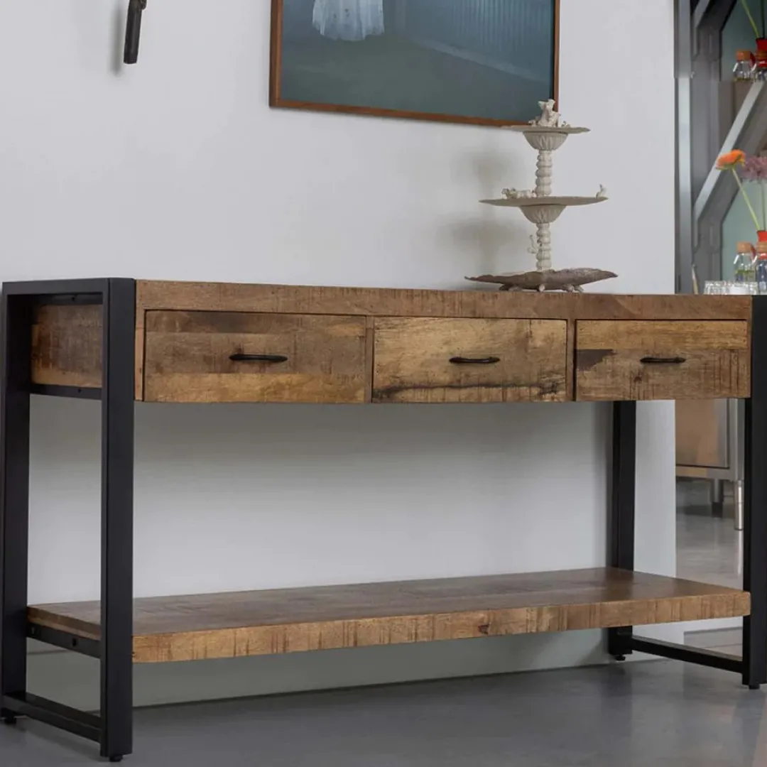 Deze luxe sidetable is echt een eyecatcher langs de wand, in de woonkamer of in de hal; het meubel past werkelijk in iedere ruimte. Het meubel bezit drie lades om kleinere eigendommen op te bergen en de plank aan de onderkant kan gebruikt worden om de kamer extra te decoreren.