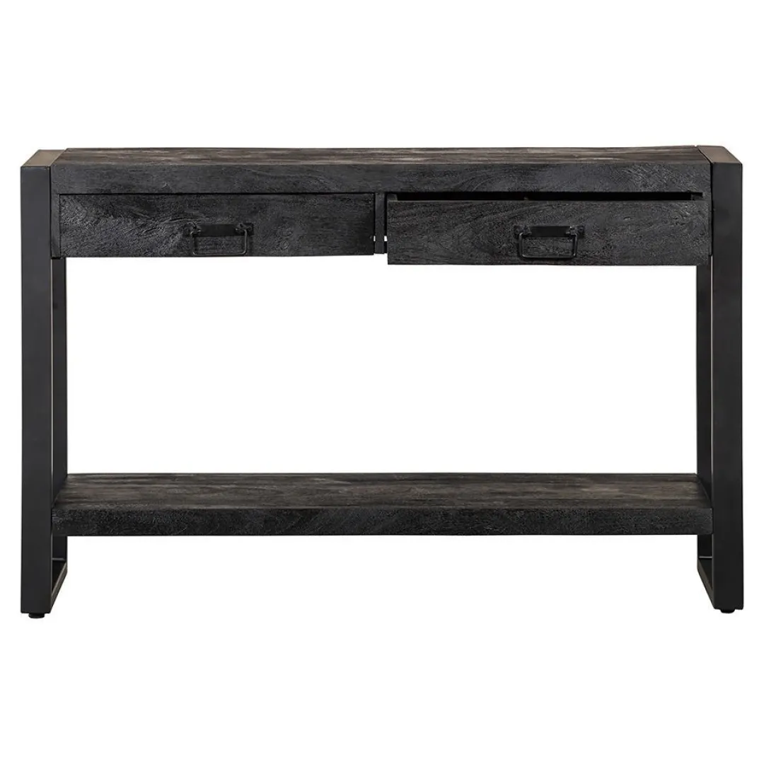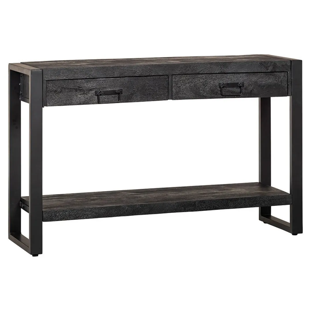 Deze sidetable uit de Britt-collectie is een mooie aanvulling op ieder interieur. Door het zwarte mangohout en het stalen frame is hij te combineren met verschillende stijlen. Hij is perfect voor het opvullen van een lege muur, maar naast je bank of als tv-meubel zou hij ook goed kunnen passen. De twee lades bieden opbergruimte voor kleine spullen.