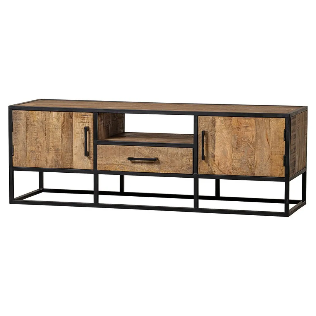 Over het massieve mangohout worden meerdere lagen houtolie en een blanke, natuurlijke bijenwas aangebracht om het hout te beschermen tegen vocht, vuiligheid en kringen. Het frame en de handgrepen zijn gemaakt van zwart gepoedercoat metaal.