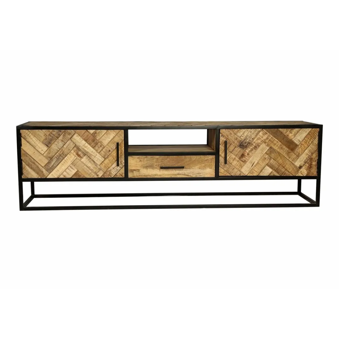 TV meubel Toronto is voor iedereen een ware must-have. Door het eigentijdse visgraatmotief zal het meubel in ieder interieur de show stelen. Het meubel heeft door zijn lengte genoeg ruimte voor een televisie en eventuele decoratie. Daarnaast is er achter de deurtjes en in het laadje genoeg opbergruimte voor bijvoorbeeld electronica of boeken.