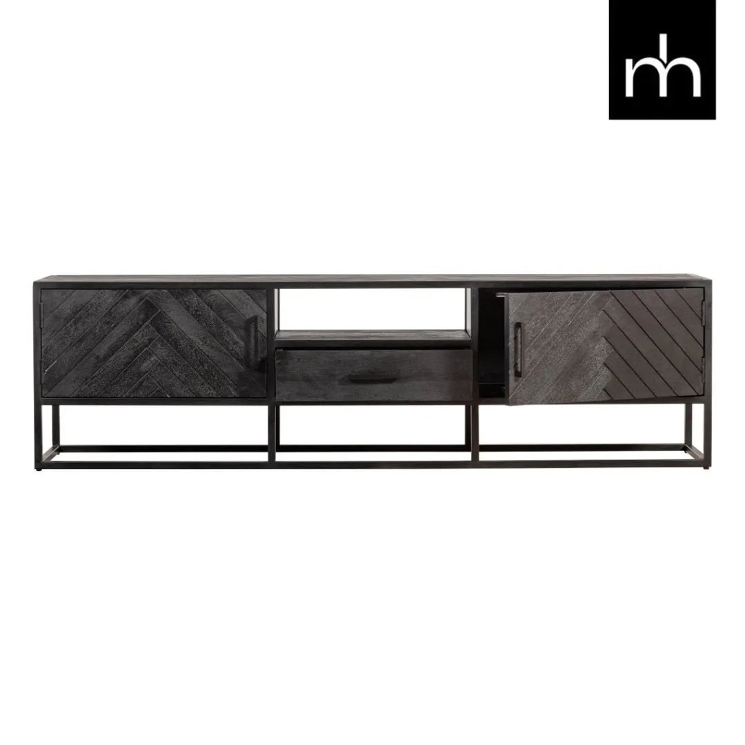 Zet TV meubel Toronto onder je televisie en een avondje op de bank hangen wordt nooit meer hetzelfde. Het meubel ziet er door het visgraatpatroon niet alleen prachtig uit, maar is ook erg handig door de hoeveelheid opbergruimte. Zo kan er een tv-ontvanger in het open vak geplaatst worden en de lade en de ruimte achter de deurtjes benut worden om allerlei spullen op te ruimen.