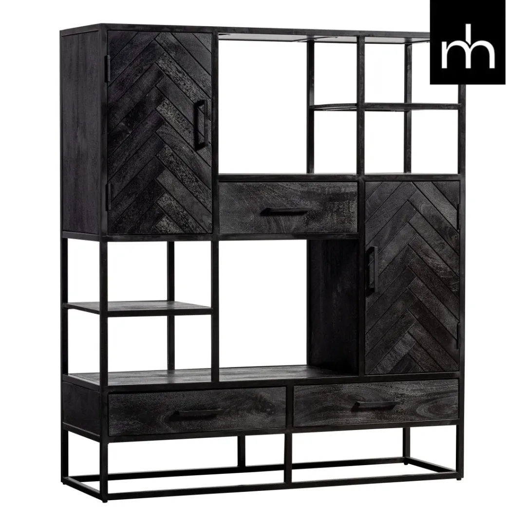 Deze stijlvolle vakkenkast uit de Toronto-serie matcht door zijn zwarte kleur met ieder interieur. Zo past hij zowel in een industrieel als een landelijk interieur. Daarnaast is hij met een breedte van 120 erg compact waardoor hij ook in kleinere ruimtes een plekje kan krijgen. De kast heeft door de drie lades, vier open vakken en de ruimtes achter de deurtjes verschillende opbergmogelijkheden.