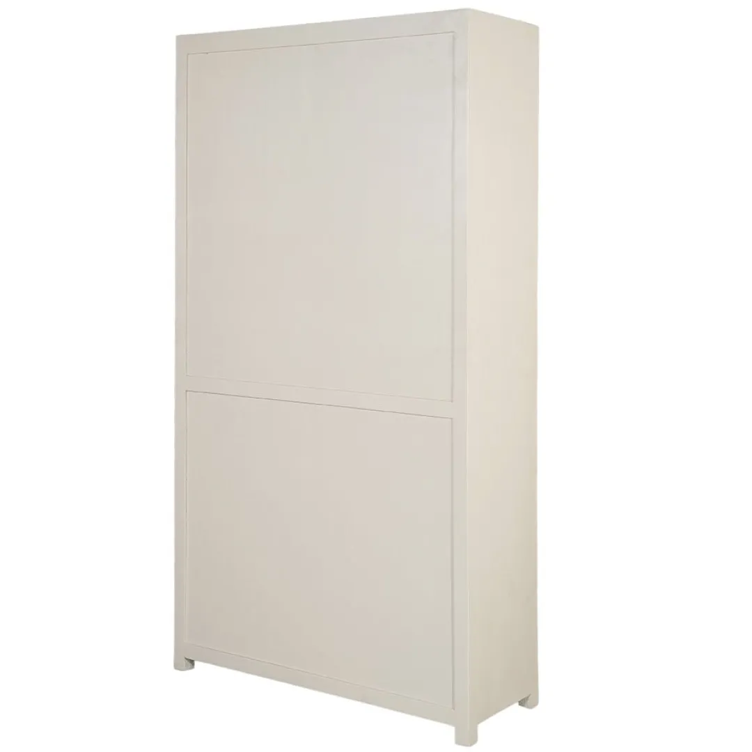 Breng stijl en functionaliteit samen in je interieur met de mangohouten wandkast Phoenix. Dit tijdloze meubel is gemaakt van hoogwaardig mangohout en afgewerkt met een frisse crèmekleurige lak. Deze afwerking geeft de kast een moderne uitstraling en biedt extra bescherming voor langdurig gebruik.