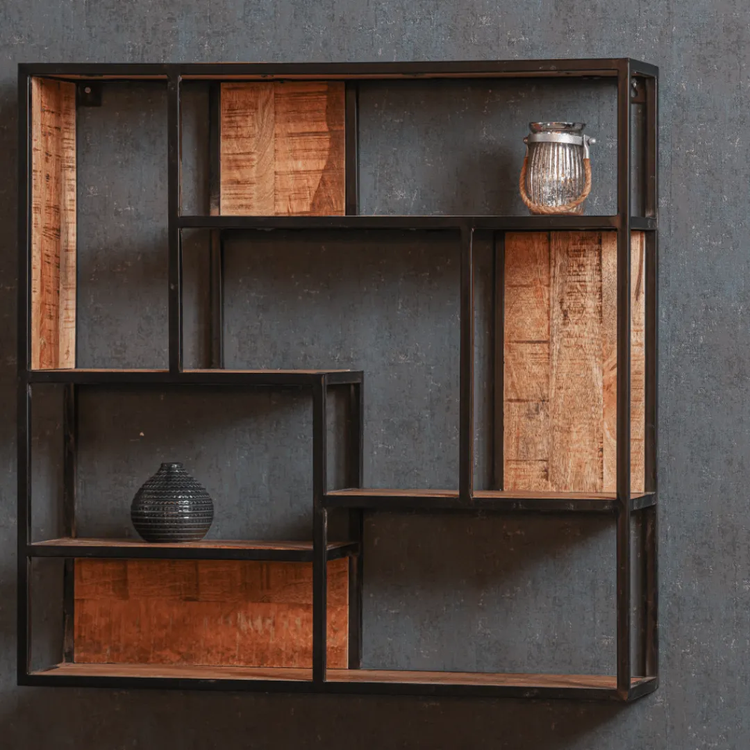 Dit stoere wandrek is een uitstekende combinatie met al onze mangohouten meubelen! Het rek heeft een inventief ontwerp dat op allerlei manieren kan worden ingevuld, om hem geheel op eigen wijze te kunnen inrichten!