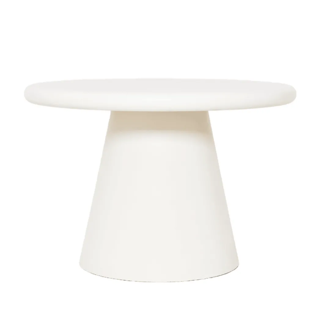 Salontafel Savannah is een stijlvolle blikvanger voor je woonkamer. Zowel het ronde blad als de stevige voet zijn volledig uitgevoerd in microcement en afgewerkt in een zachte wit tint. Dit geeft de tafel een moderne en rustige uitstraling die in vrijwel ieder interieur past.