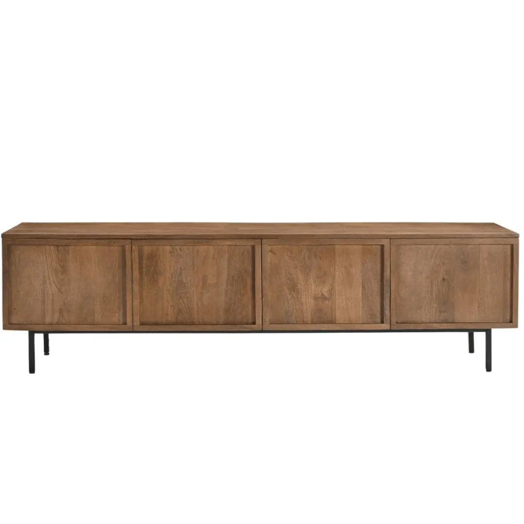 De kasten uit de Elan collectie combineren een sfeervolle uitstraling met een eigentijdse look. Het slanke zwartstalen onderstel voegt een verfijnde touch toe, terwijl het duurzame hardhout in een lichtbruine naturel tint zorgt voor een warme en uitnodigende sfeer. De opvallende vlakken bieden een stijlvol accent in je interieur.