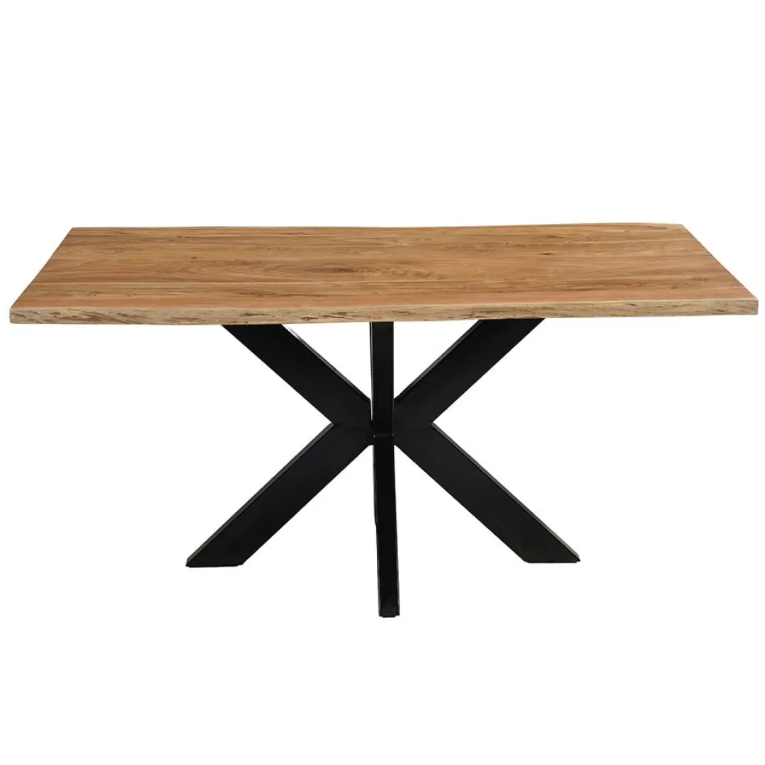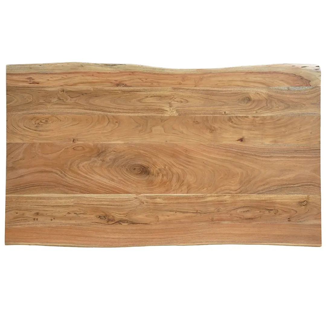 De eettafel Edge combineert de robuuste uitstraling van acaciahout met een stoer boomstamblad. Het stevige blad heeft een natuurlijke vorm en unieke houtnerf, waardoor elke tafel een eigen karakter heeft.
