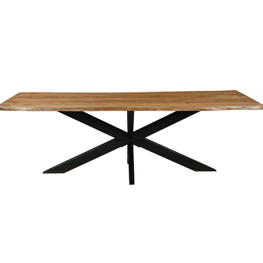 De eettafel Edge brengt stoer en natuurlijk samen in een perfecte balans. Het robuuste acaciahouten blad heeft een warme, natuurlijke uitstraling die de tafel een unieke en karaktervolle look geeft.
