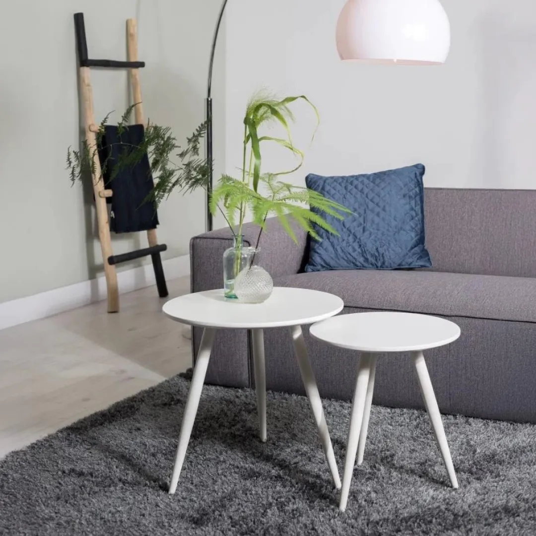 Gemaakt van hout en afgewerkt in een zachte witte tint, combineren deze tafels duurzaamheid met verfijnde eenvoud. Ze voelen stevig aan en zijn ideaal voor dagelijks gebruik, terwijl hun subtiele ontwerp de ruimte luchtig en open houdt. De bijzettafels zijn direct klaar voor gebruik; je hoeft ze alleen uit te pakken en een fijne plek in huis te geven, zodat ze jouw interieur verrijken met warme charme.