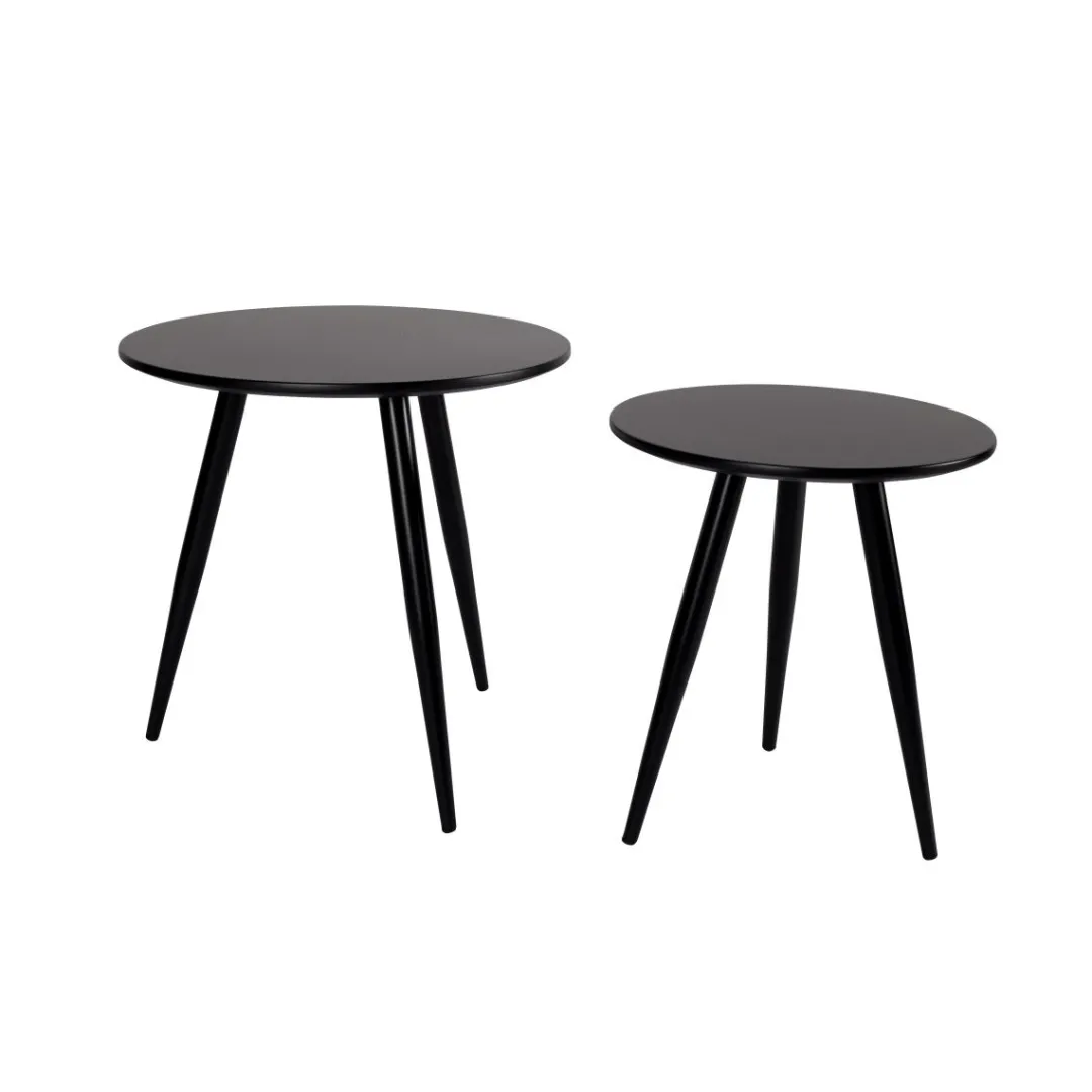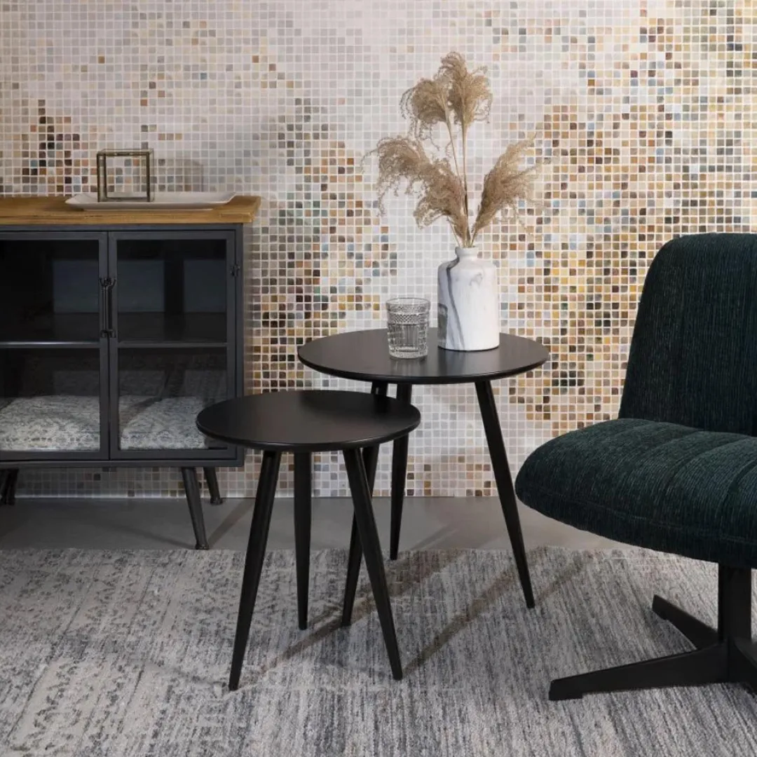 De set van twee Bijzettafels Daven Zwart Jacob Jenzens brengt stijlvolle eenvoud in je woonkamer met hun donkere, ingetogen uitstraling. De ronde vormen en het bijpassende duo-design passen moeiteloos binnen moderne, Scandinavische of klassieke interieurs. Samen vormen ze niet alleen handige bijzetplekken voor een drankje of decoratie, maar ook een sfeervol statement dat je zithoek elegant complementeert.