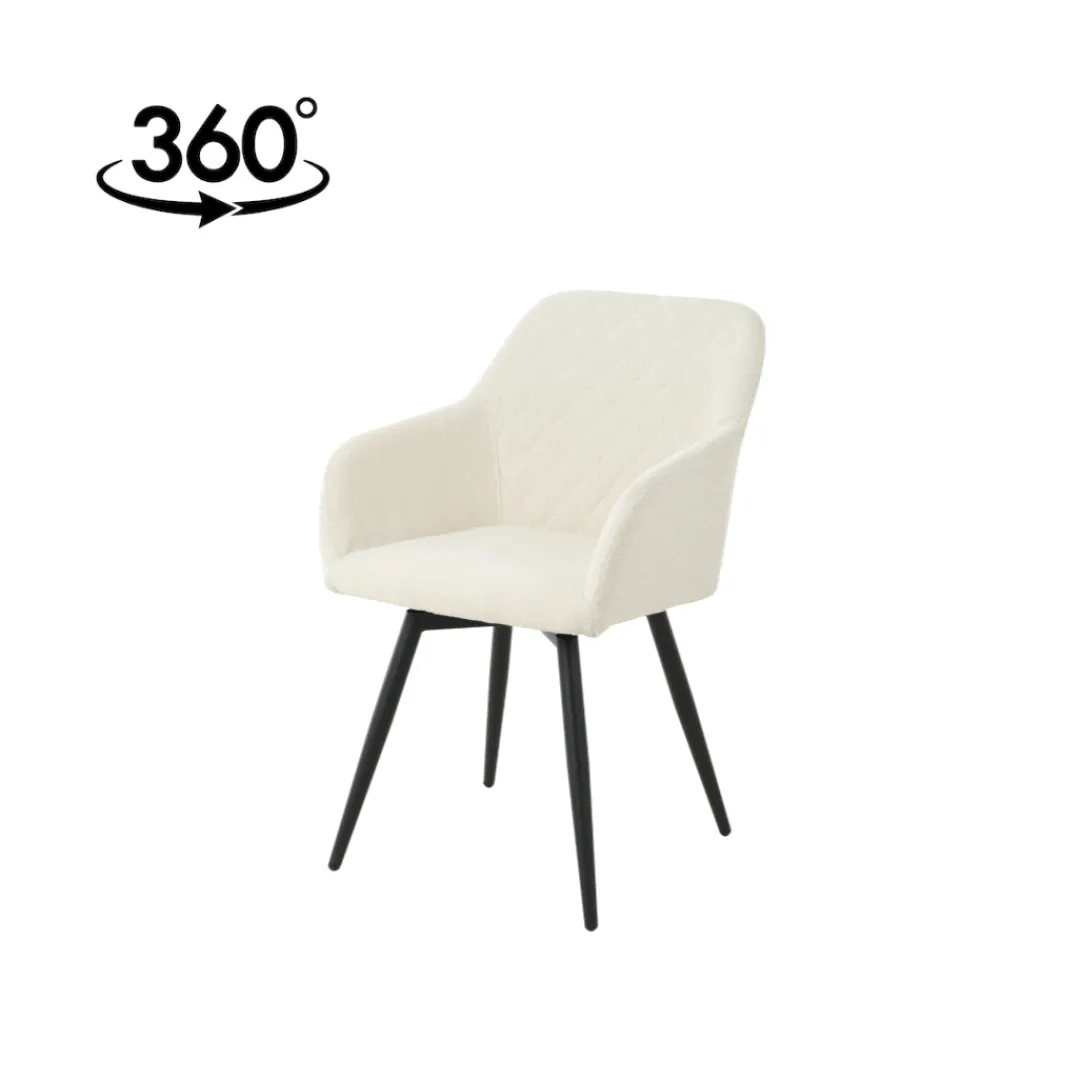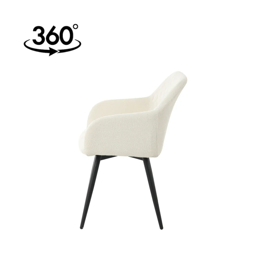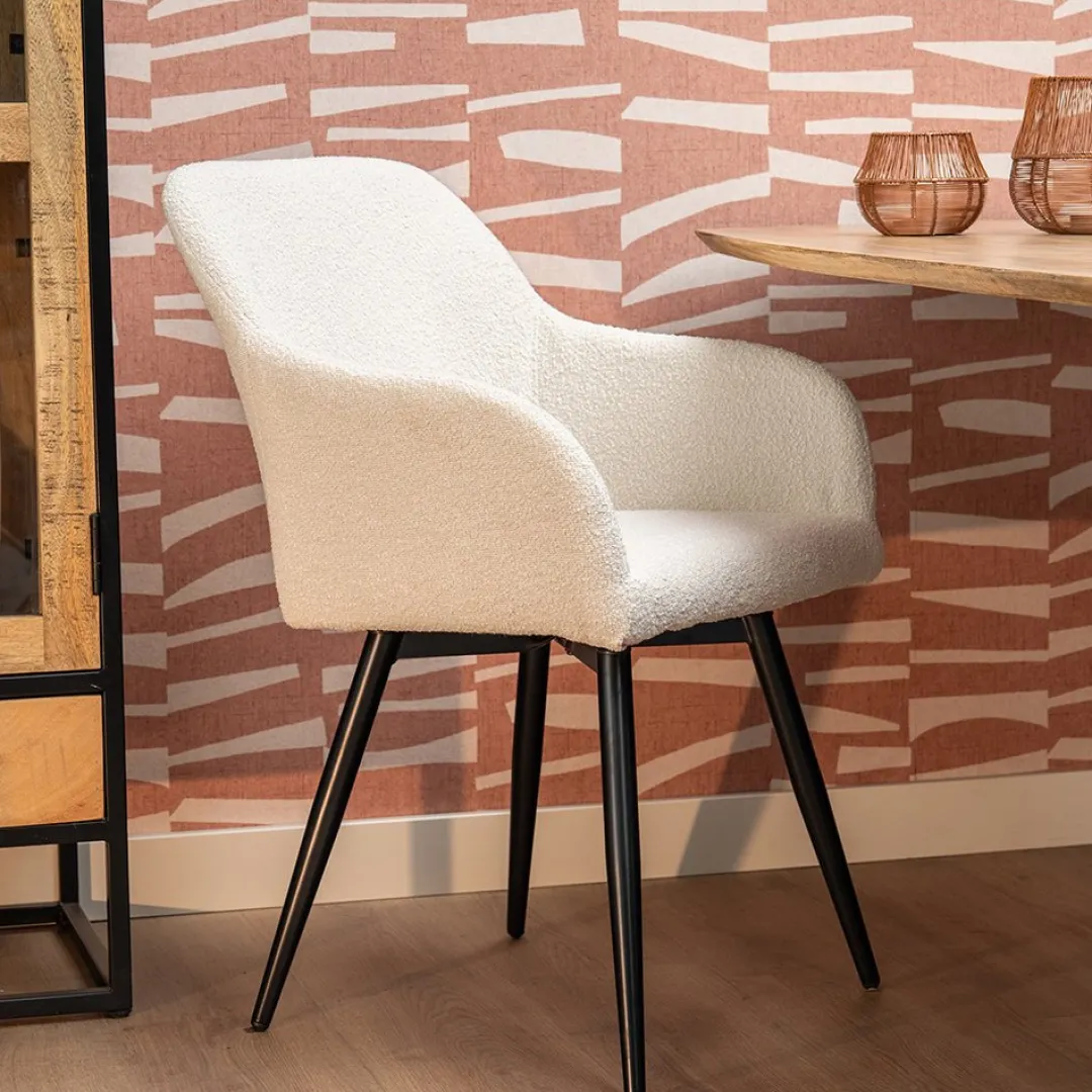 Ga voor een tijdloze en frisse uitstraling in je eetkamer met de Amiens eetkamerstoel in de kleur wit. De zachte teddy stof bekleding in deze heldere kleur brengt een gevoel van ruimte en lichtheid in je interieur.