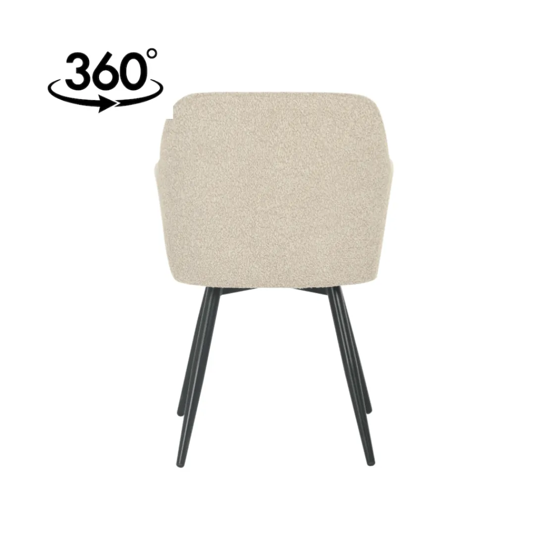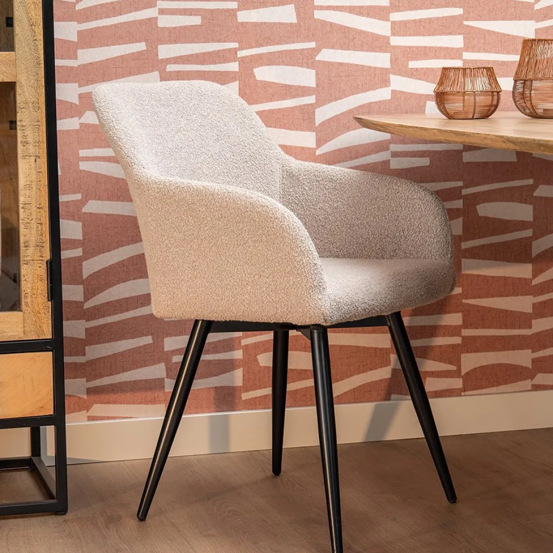 Breng een vleugje natuurlijke warmte in je eetkamer met de Amiens eetkamerstoel in de kleur zand. De teddy stof bekleding in deze aardse tint zorgt voor een gezellige en huiselijke sfeer.