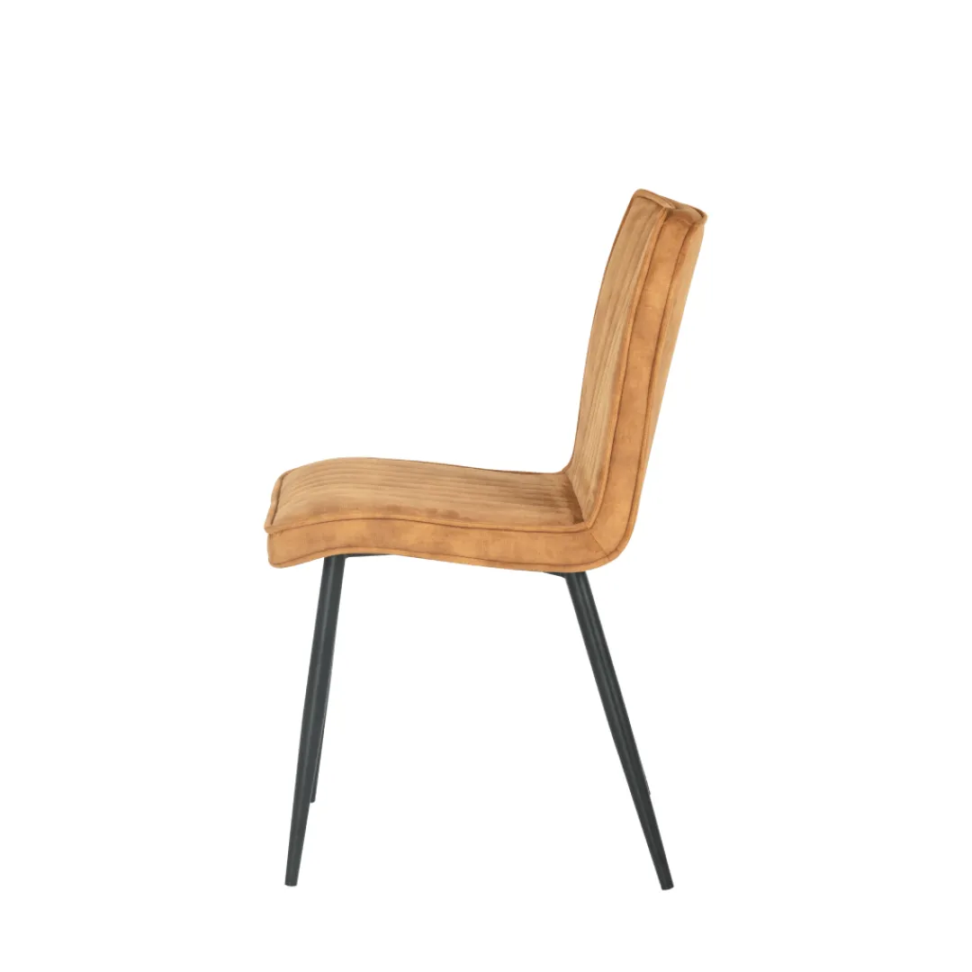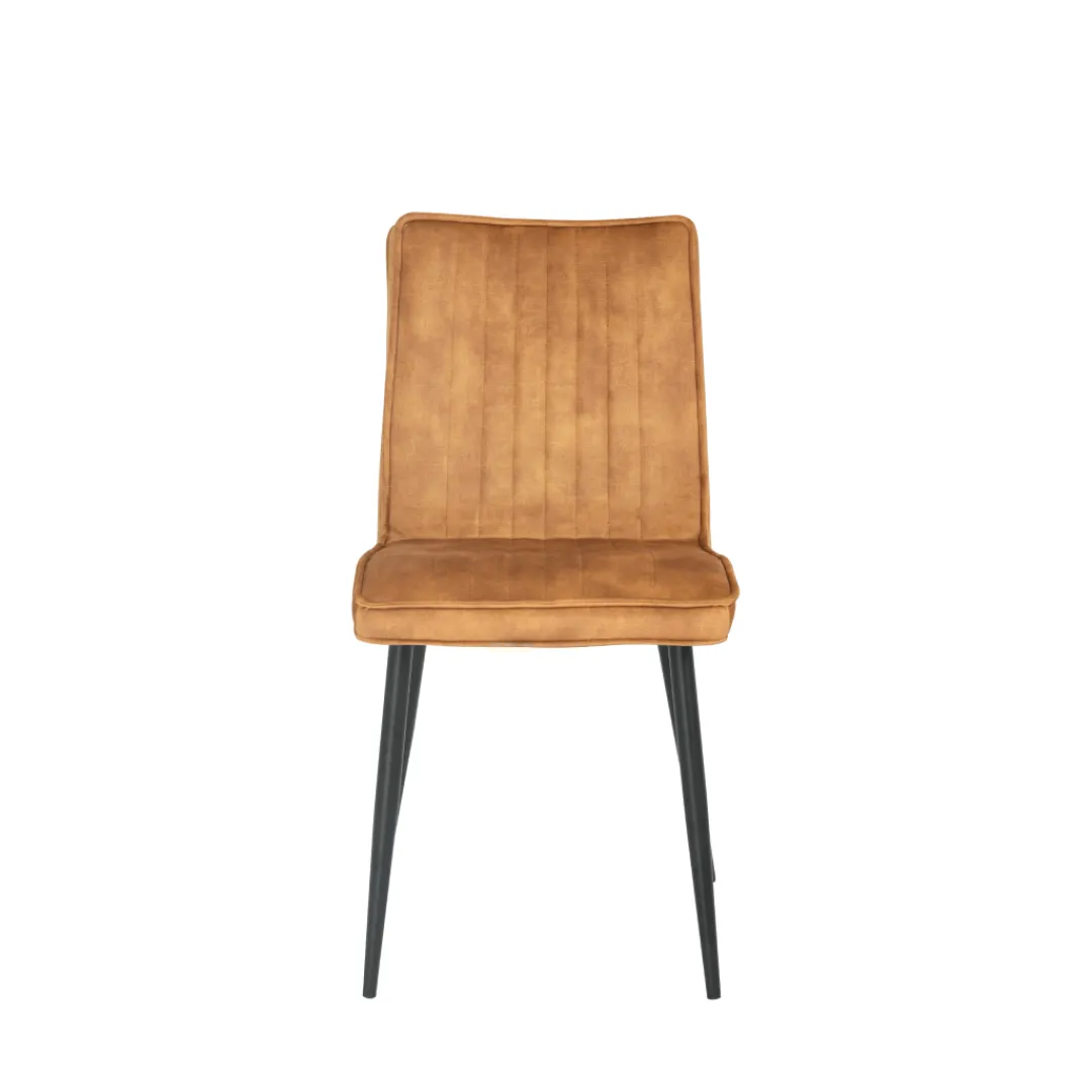 De eetkamerstoel Angers in een warme cognackleur is de perfecte aanvulling voor je eetkamer. Het weelderige fluweel voelt niet alleen heerlijk zacht en comfortabel aan, maar voegt ook een vleugje elegantie toe aan je interieur. Het moderne zwarte metalen onderstel geeft de stoel niet alleen stabiliteit, maar ook een eigentijdse uitstraling.