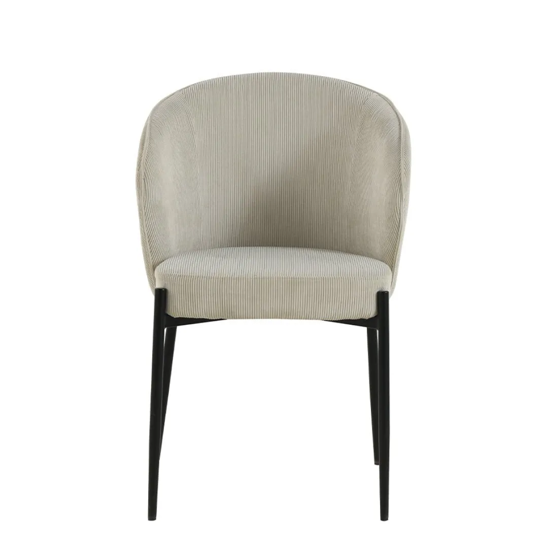 De beige ribstof voegt textuur toe aan het geheel, terwijl het zwarte gepoedercoate metalen onderstel een solide en duurzame basis vormt. Dit resulteert niet alleen in eigentijdse charme, maar ook in stabiliteit en betrouwbaarheid voor dagelijks gebruik.