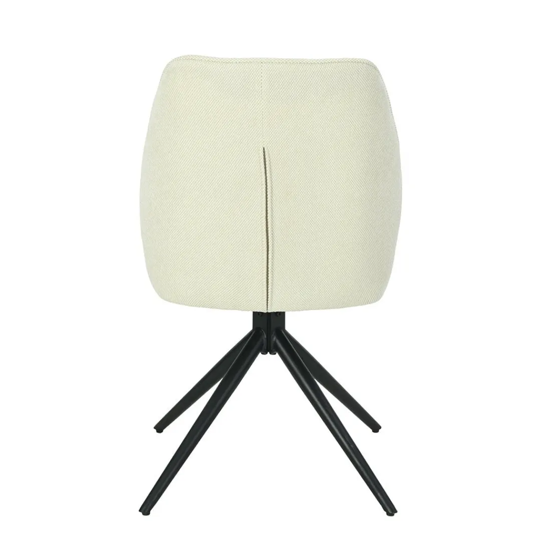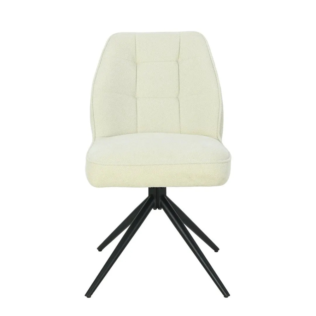 Eetkamerstoel Bayonne Lichtgrijs voegt een moderne en frisse uitstraling toe aan je eetkamer. De lichtgrijze stof heeft een zachte look, terwijl het zwart gepoedercoate metalen onderstel zorgt voor een stoer contrast. De zitting is draaibaar, wat extra comfort en bewegingsvrijheid biedt tijdens het zitten.