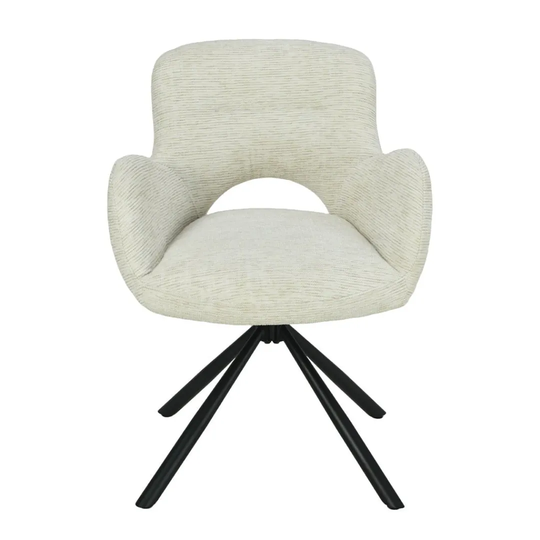 Eetkamerstoel Blois Wit is een stijlvolle en comfortabele aanvulling op je interieur. De witte stoffen bekleding geeft de stoel een moderne en verfijnde uitstraling, terwijl het zwart gepoedercoate metalen onderstel een stoer accent toevoegt. De armleuningen zorgen voor extra comfort en ondersteuning.