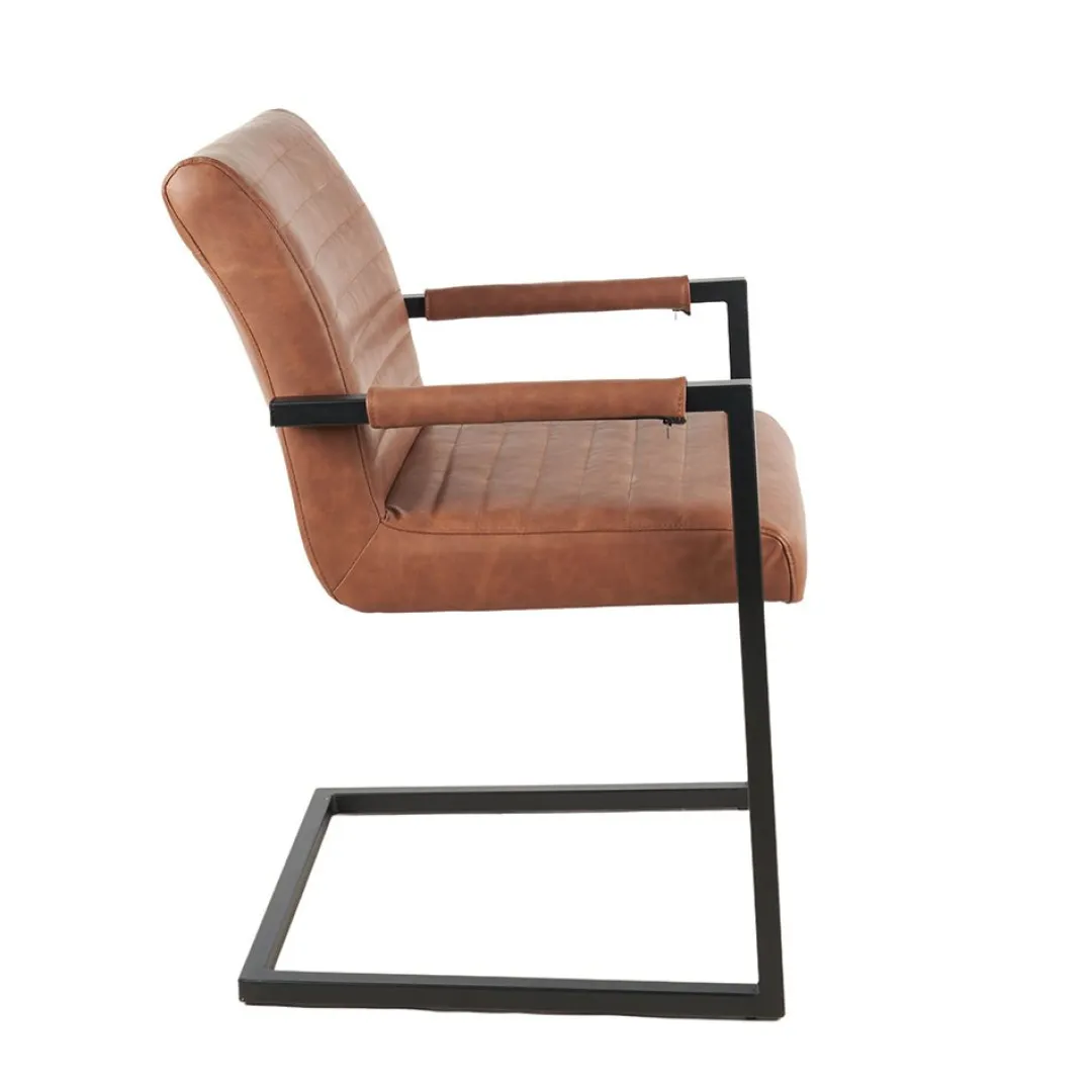 De Eetkamerstoel Caen Cognac brengt stijl en comfort samen. Het kunstleer in een warme cognackleur geeft de stoel een chique uitstraling, die perfect past in zowel moderne als industriële interieurs. Het zwarte gepoedercoate metalen onderstel biedt stevige ondersteuning en geeft de stoel een stoere look.