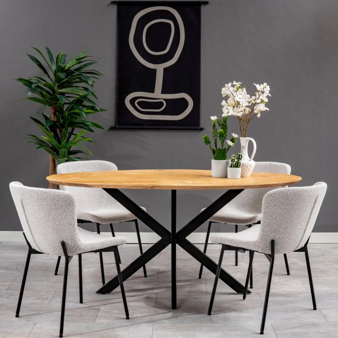 De zwarte poten van het onderstel geven de stoel een eigentijdse uitstraling en bieden een stevige basis. Combineer de Lille eetkamerstoel in beige met een mangohouten eettafel voor een moderne en luxe setting.
