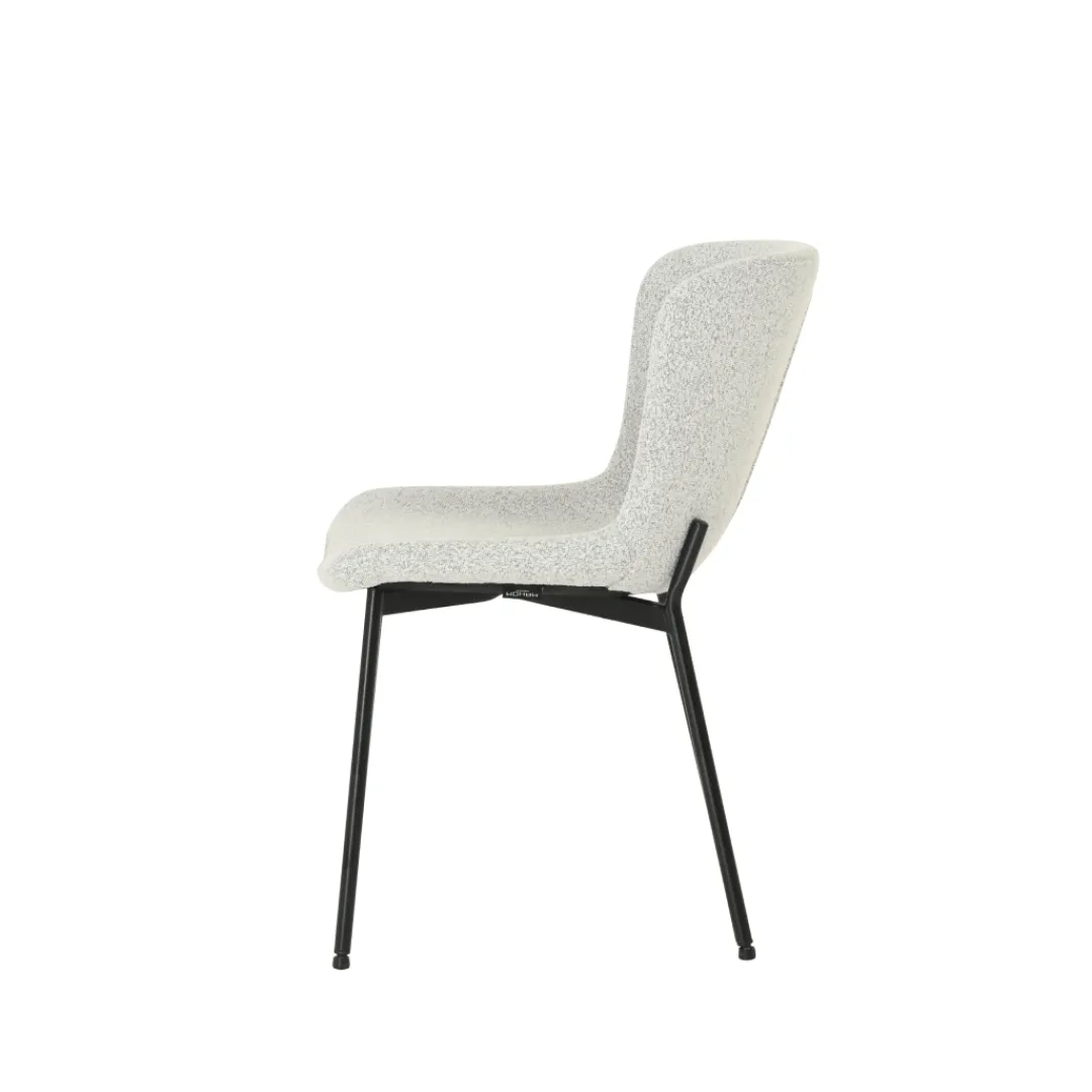 Voeg een vleugje elegantie toe aan je eetkamer met de Lille eetkamerstoel in de kleur beige. De bouclé stof bekleding in deze warme tint nodigt uit tot comfortabel en ontspannen tafelen.