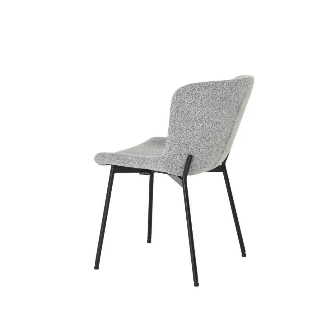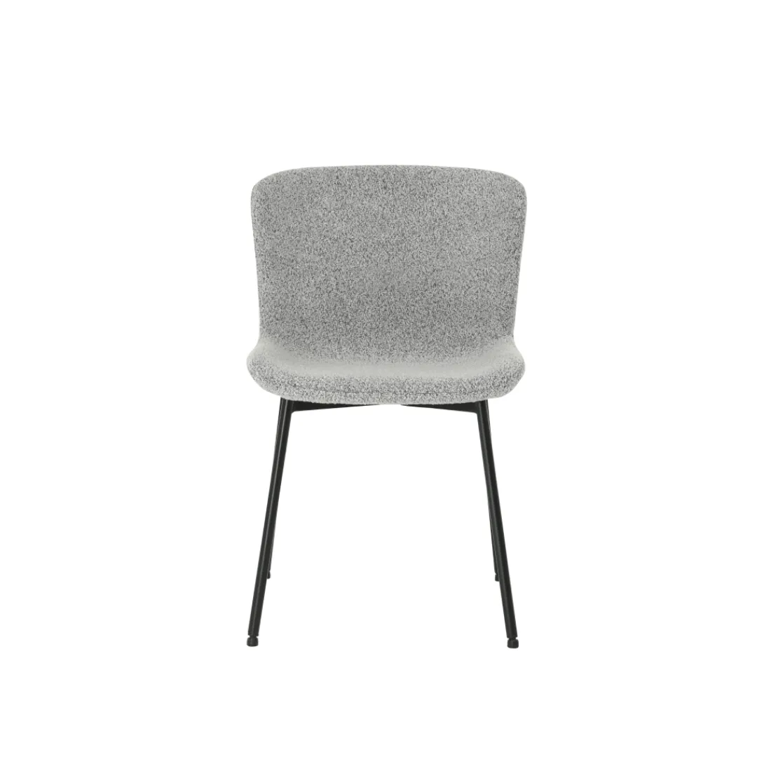 Voeg een vleugje lichtheid toe aan je eetkamer met de Lille eetkamerstoel in de kleur lichtgrijs. De bouclé stof bekleding in deze subtiele tint creëert een rustige en ontspannen sfeer.