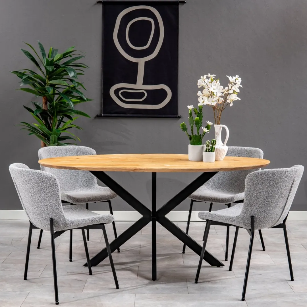 De zwarte poten van het onderstel geven de stoel een eigentijdse touch en bieden stevige ondersteuning. Combineer de Lille eetkamerstoel in lichtgrijs met een ovale eettafel voor een verfijnde en moderne look.