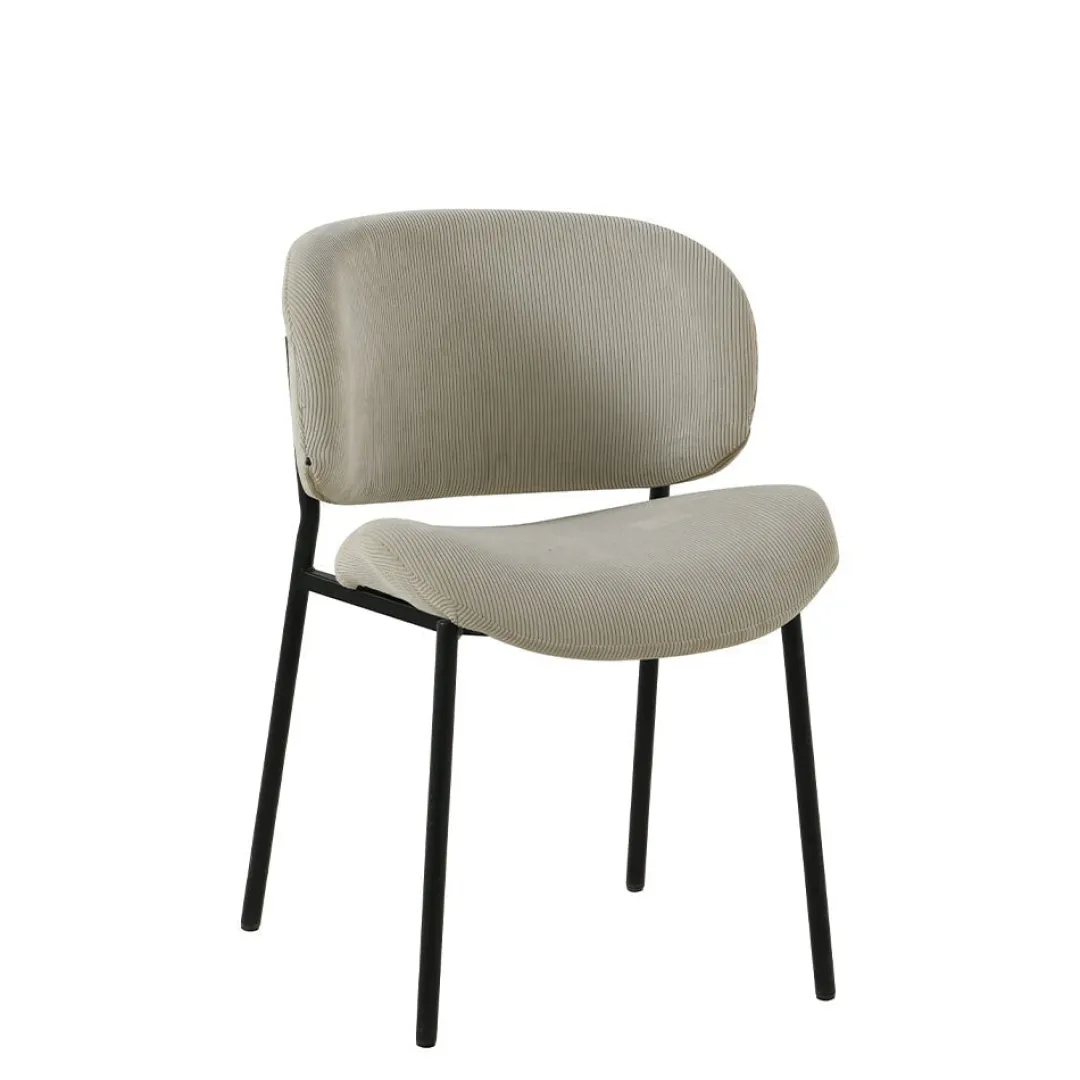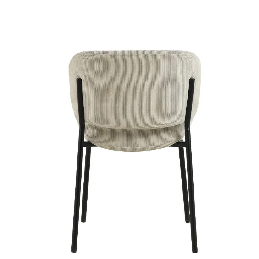 Ontdek de perfecte mix van comfort en stijl met onze eetkamerstoel Narbonne in beige ribstof, compleet met een elegant zwart gepoedercoat metalen onderstel. Deze stoel straalt een tijdloze charme uit en voegt een vleugje eigentijdse elegantie toe aan elke eetruimte.