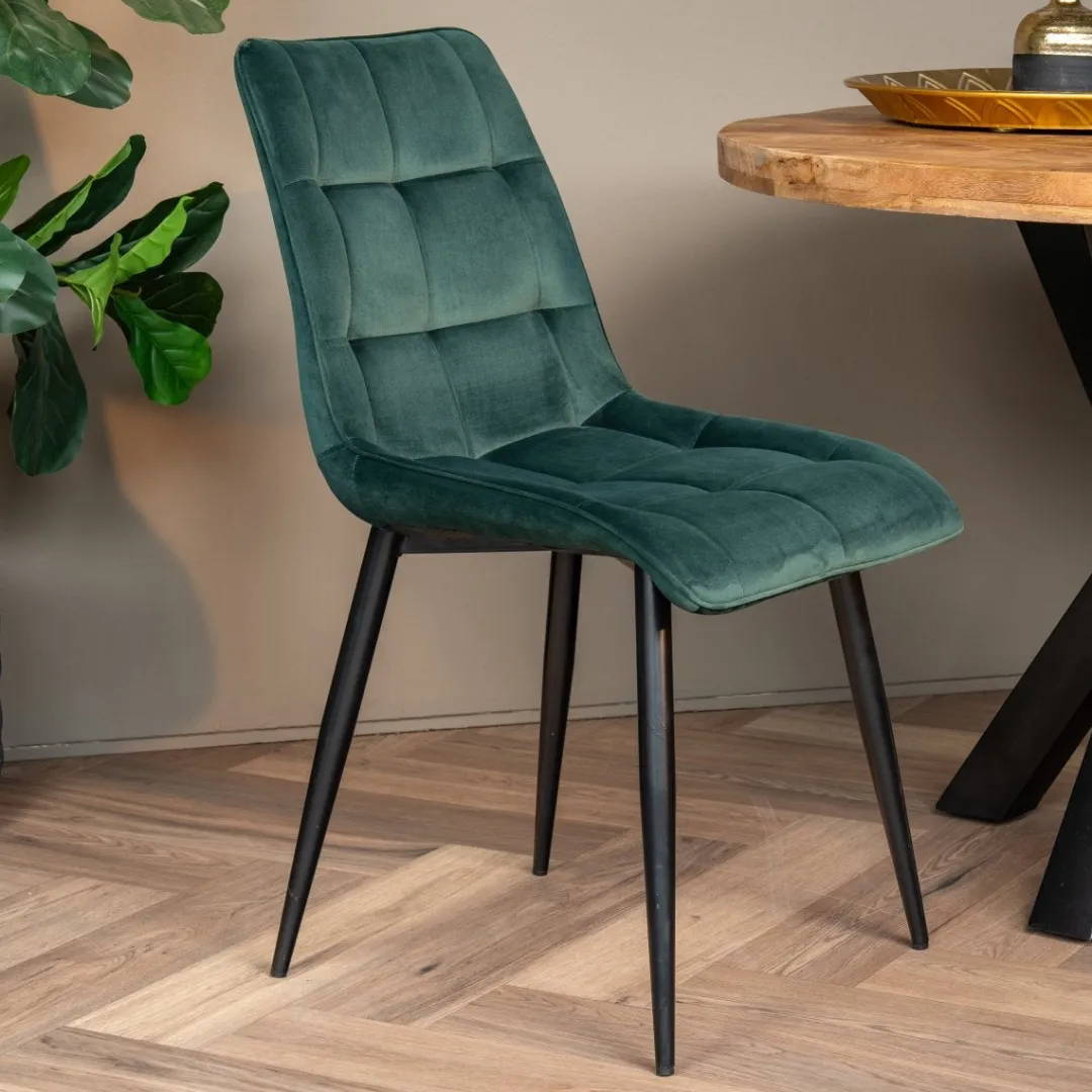 Met zijn simpele, stijlvolle ontwerp past de Eetkamerstoel Nice in ieder interieur. Sterker nog, de stoel kan moeiteloos in elke kamer van het huis gezet worden. Het zachte velvet heeft een geblokte afwerking die voor extra zitcomfort zorgt om het diner nog comfortabeler te maken.