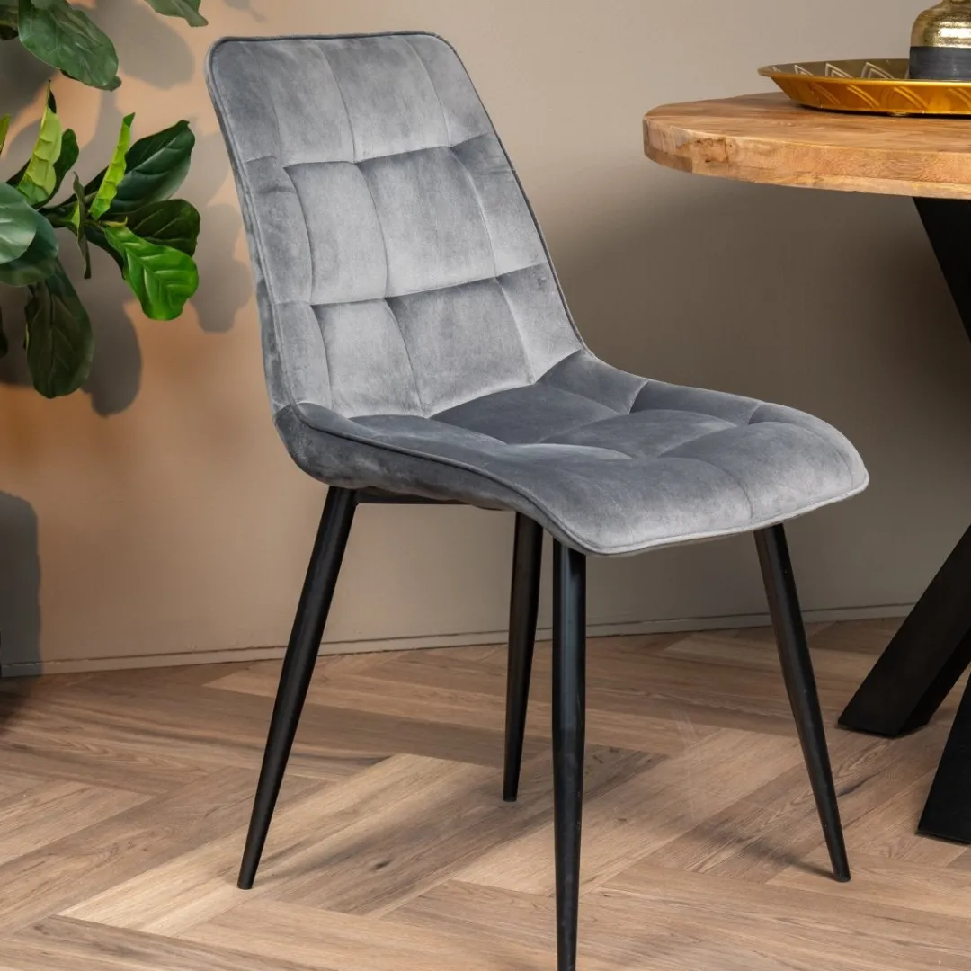 Met zijn tijdloze, trendy design is de Eetkamerstoel Nice de eyecatcher van je eetkamer. De zitting is gemaakt van zacht velvet, wat dankzij de geblokte afwerking nóg comfortabeler is. De verfijnde poten onder de grijze zitting geven het meubel zijn luxueuze uitstraling.