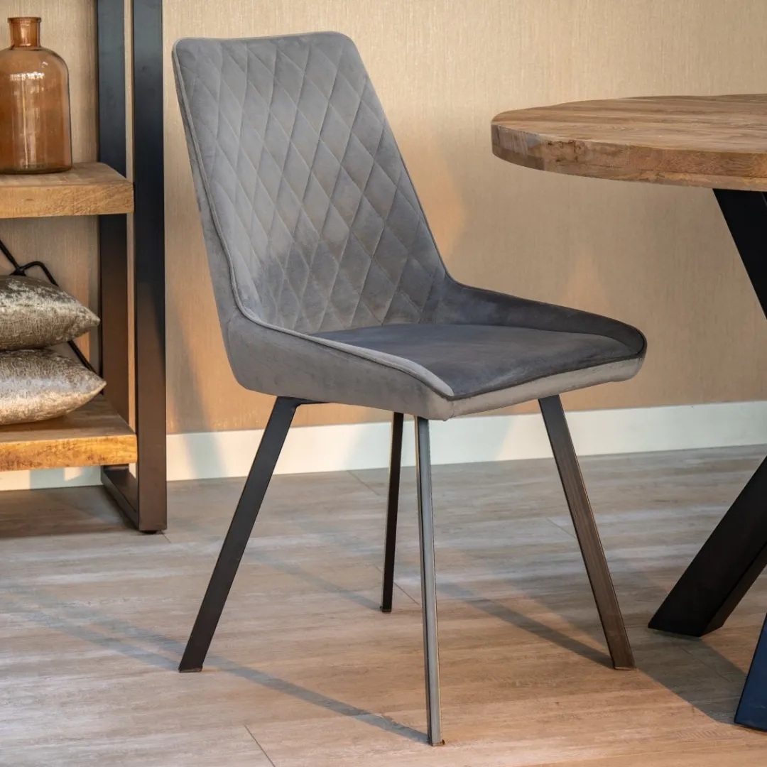 Verrijk de eetkamer met de trendy Eetkamerstoel Reims! De lichtgrijze zitting heeft een erg aangename uitstraling, terwijl het ruitpatroon voor meer klasse in je eetkamer zorgt. De zachte velvet zitting heeft een stijlvolle, hoekige afwerking, wat de stoel een uniek, chique karakter geeft.