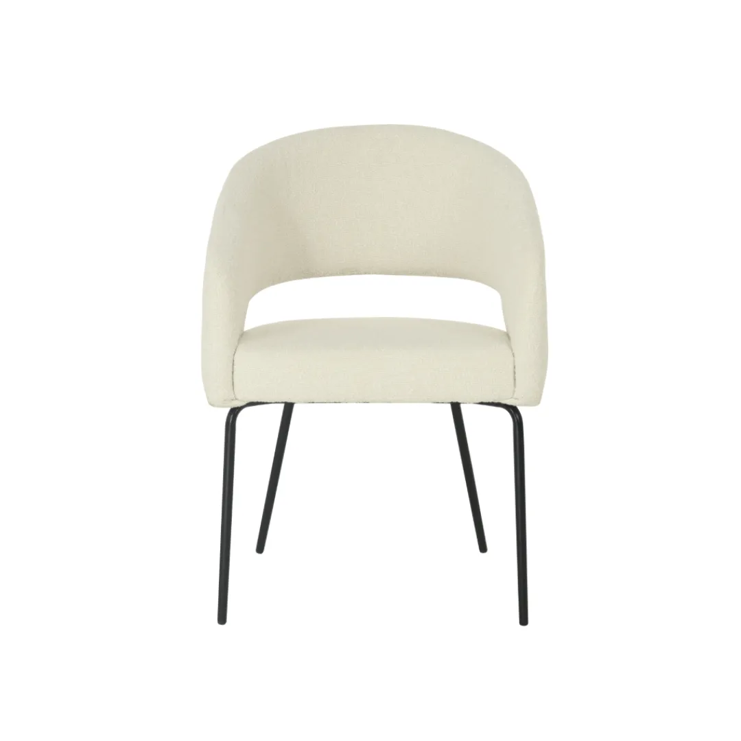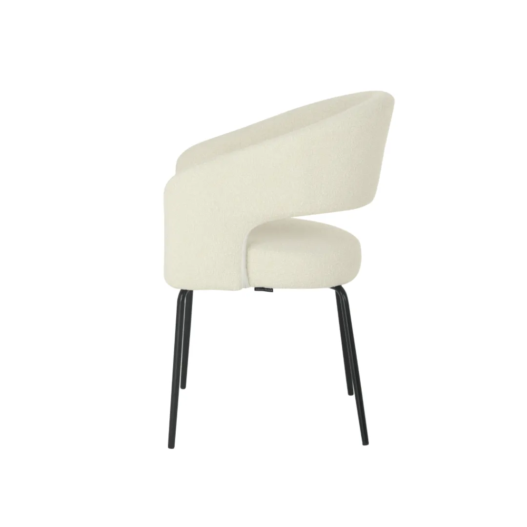 Ga voor tijdloze elegantie in je eetkamer met de Rennes eetkamerstoel in de kleur wit. De zachte teddy stof bekleding in deze heldere tint voegt een vleugje luxe en verfijning toe aan jouw interieur.