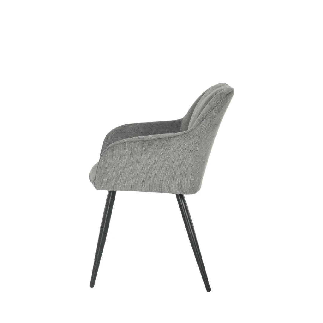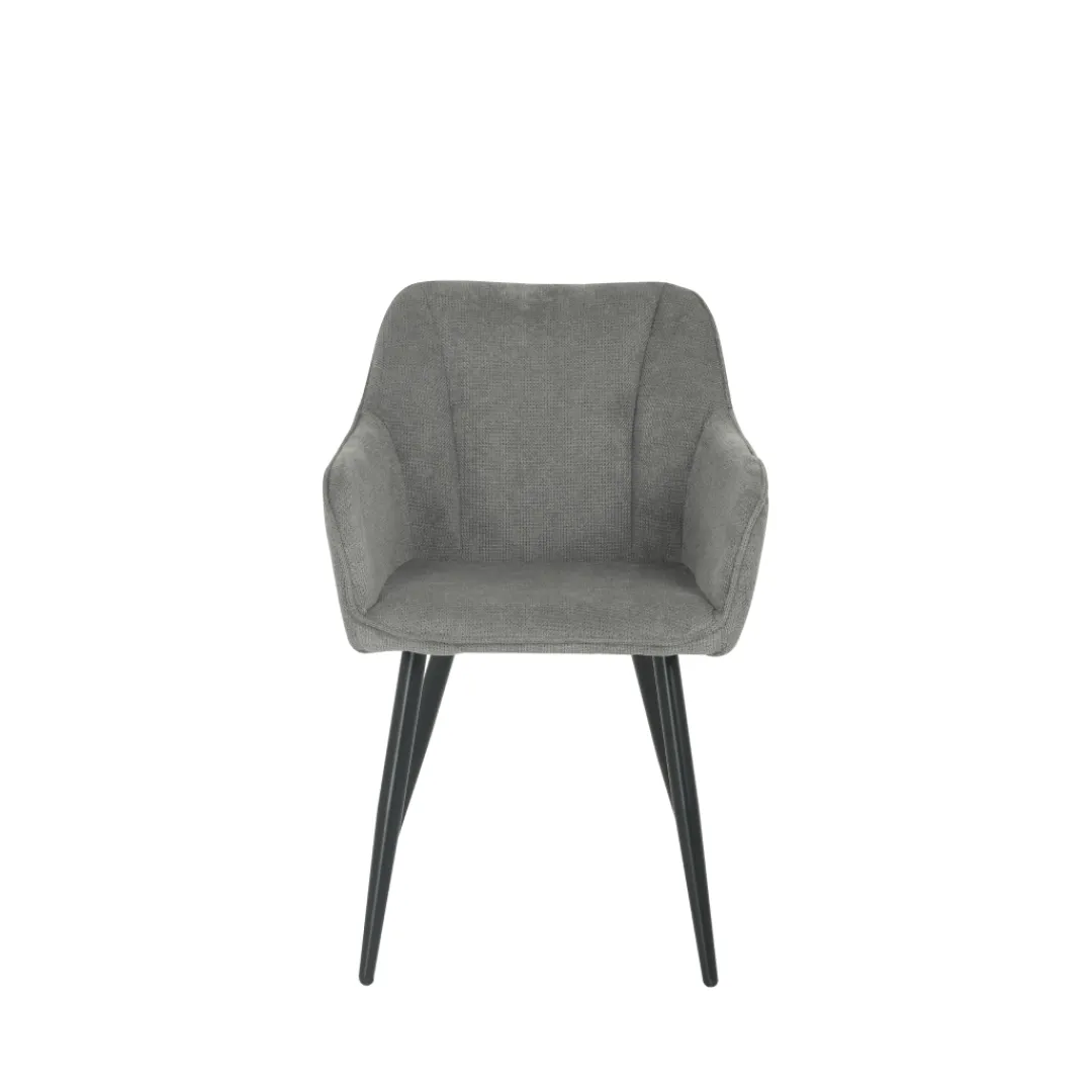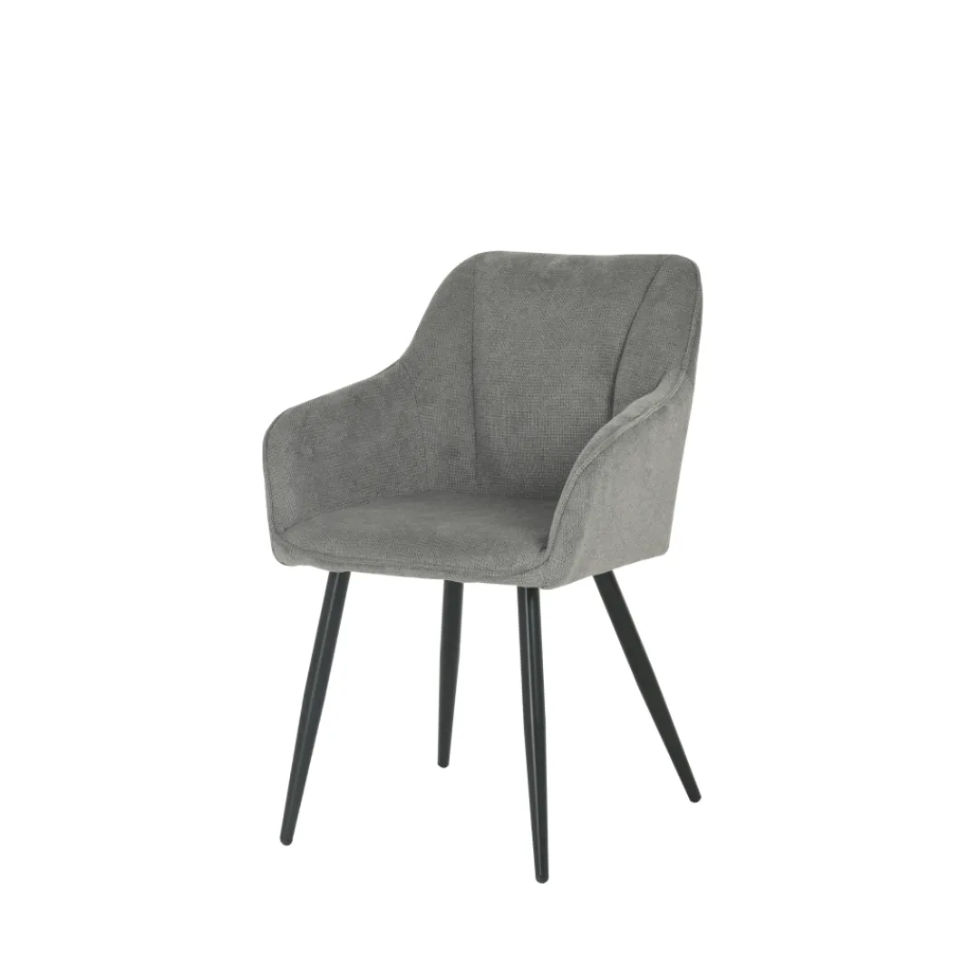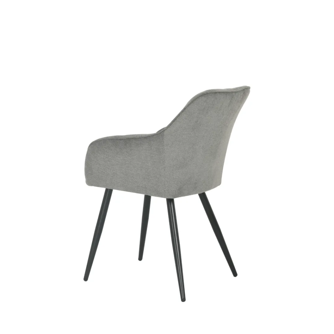 De Eetkamerstoel Rouen, gehuld in donkergrijs linnen, belichaamt een verfijnde toevoeging aan elk interieur. Met zijn tijdloze ontwerp en robuuste constructie, weet deze stoel comfort en functionaliteit naadloos te verenigen. De donkergrijze linnen bekleding biedt een zachte, luxueuze touch, terwijl het zwarte metalen onderstel zowel stabiliteit als een eigentijdse uitstraling toevoegt.