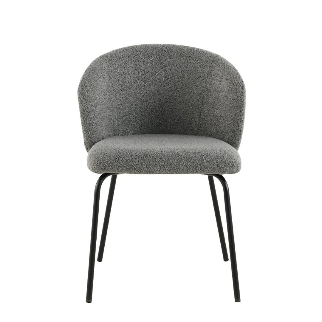 Ontdek de perfecte balans tussen elegantie en comfort met onze eetkamerstoel Tulle in donkergrijze bouclé stof. Deze prachtige stoel is een verfijnde toevoeging aan elk interieur, of het nu gaat om een eigentijdse eetkamer, een stijlvol kantoor of een gezellige keukenhoek.