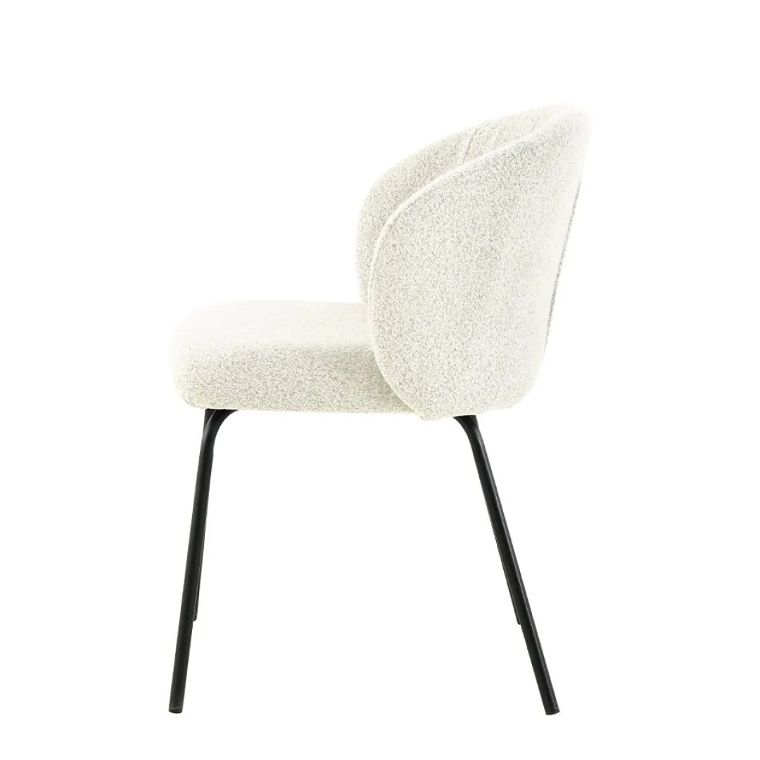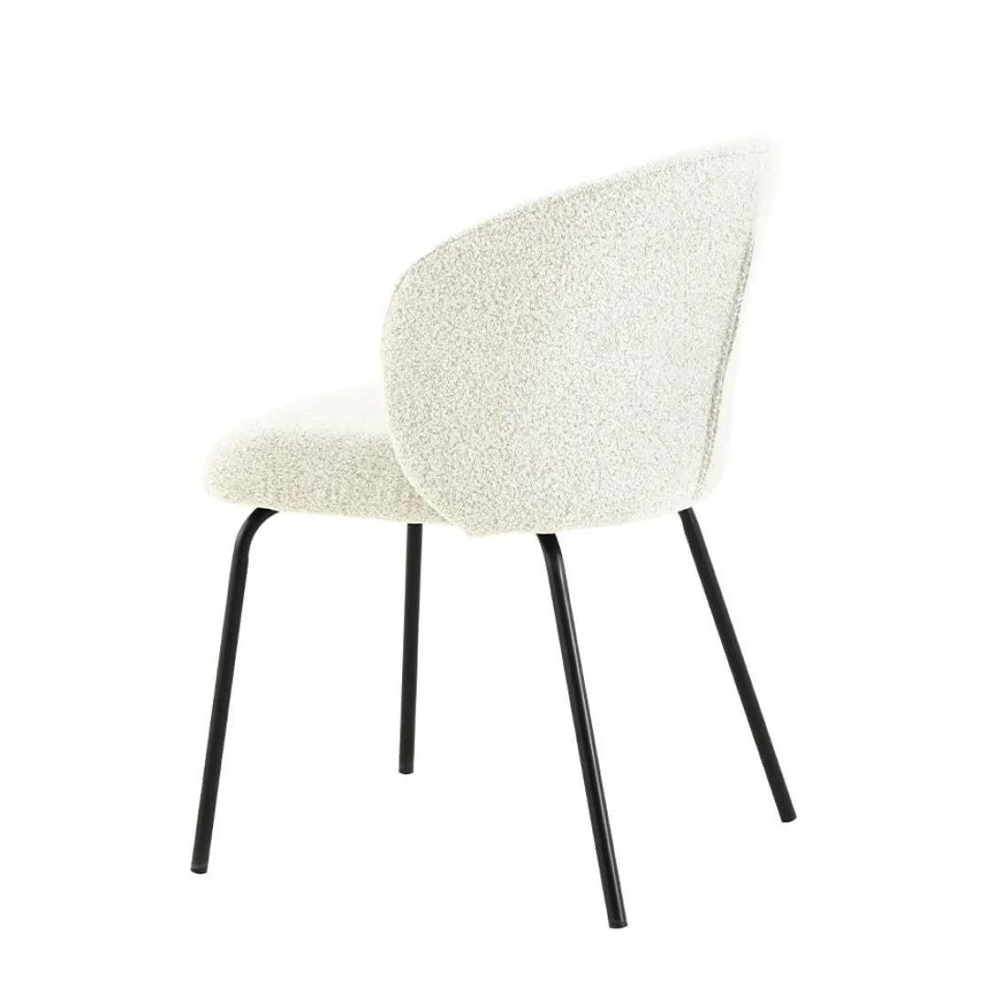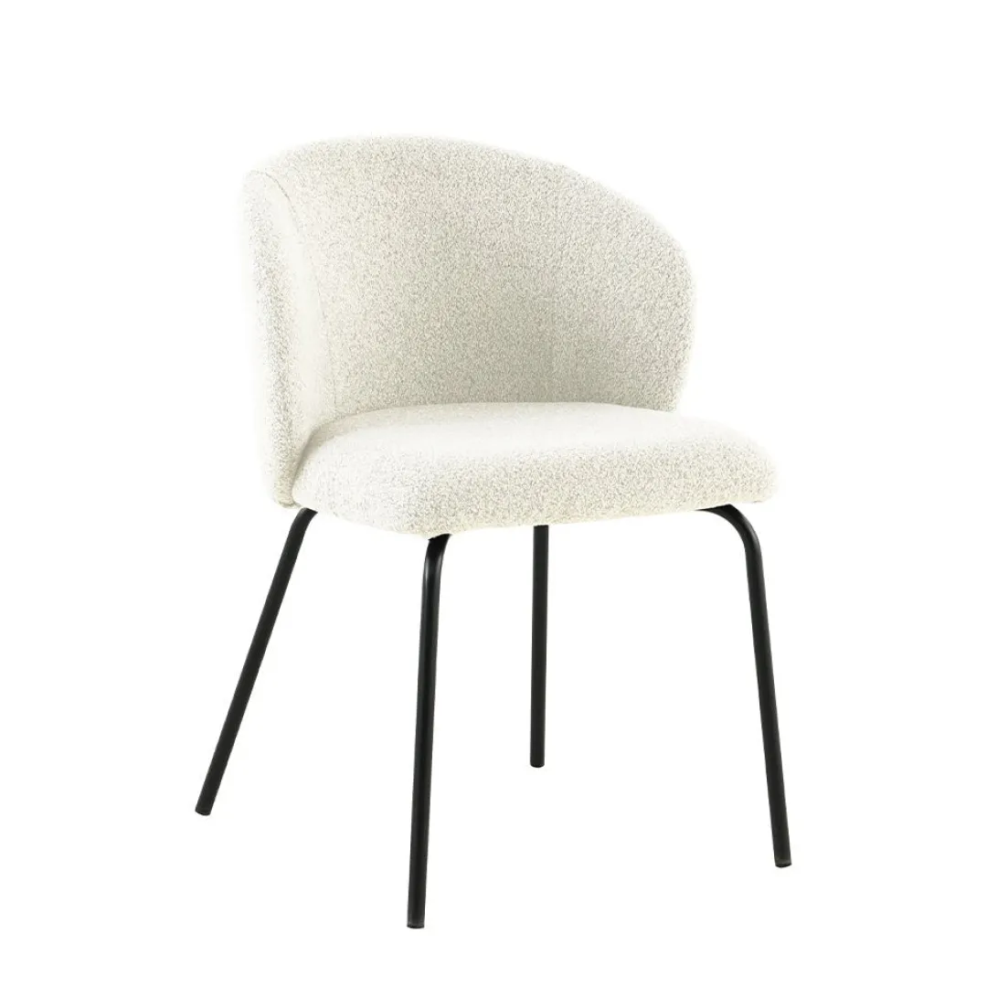 Ontdek de sublieme combinatie van stijl en comfort met onze eetkamerstoel Tulle, gehuld in witte bouclé stof. Deze prachtige stoel voegt een vleugje verfijning toe aan elke ruimte, of het nu een eigentijdse eetkamer, een chic kantoor of een knusse keukenhoek betreft.