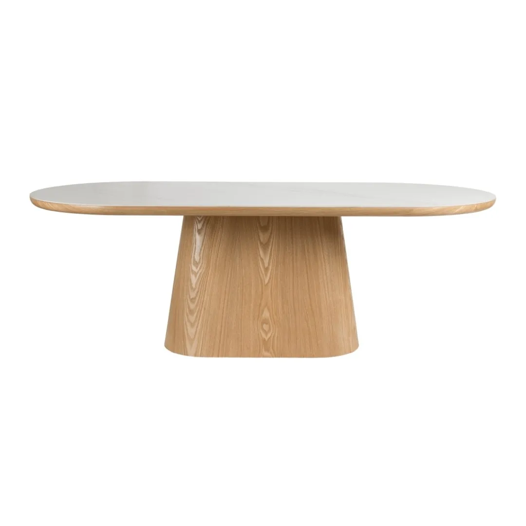 De ovale eettafel Alma in eiken uit de Jacob Jenzens-serie brengt een warme en natuurlijke uitstraling in je eetkamer. De organische vorm nodigt uit tot samenzijn en maakt van iedere maaltijd een intiem moment. Dankzij de rustige, eikenkleur past de tafel moeiteloos in uiteenlopende interieurstijlen en vormt hij een subtiele blikvanger die sfeer toevoegt zonder te overheersen.