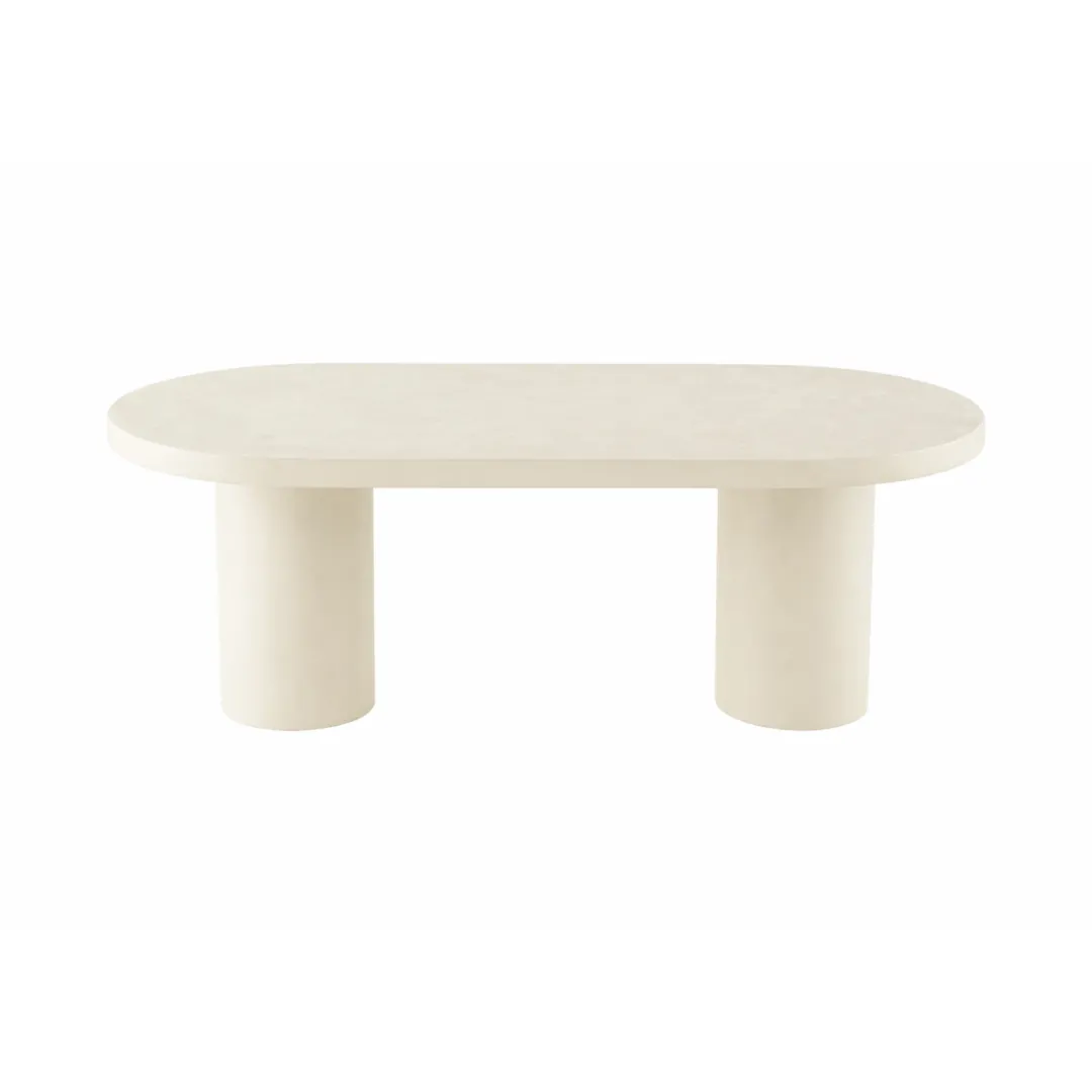 Eettafel Savannah Capsule is een elegante tafel die direct sfeer brengt in je eetkamer. Het capsule blad en de stevige voet zijn volledig uitgevoerd in microcement en afgewerkt in een zachte witte tint. Deze combinatie geeft de tafel een moderne, maar tegelijkertijd rustige uitstraling die mooi aansluit bij verschillende interieurstijlen.
