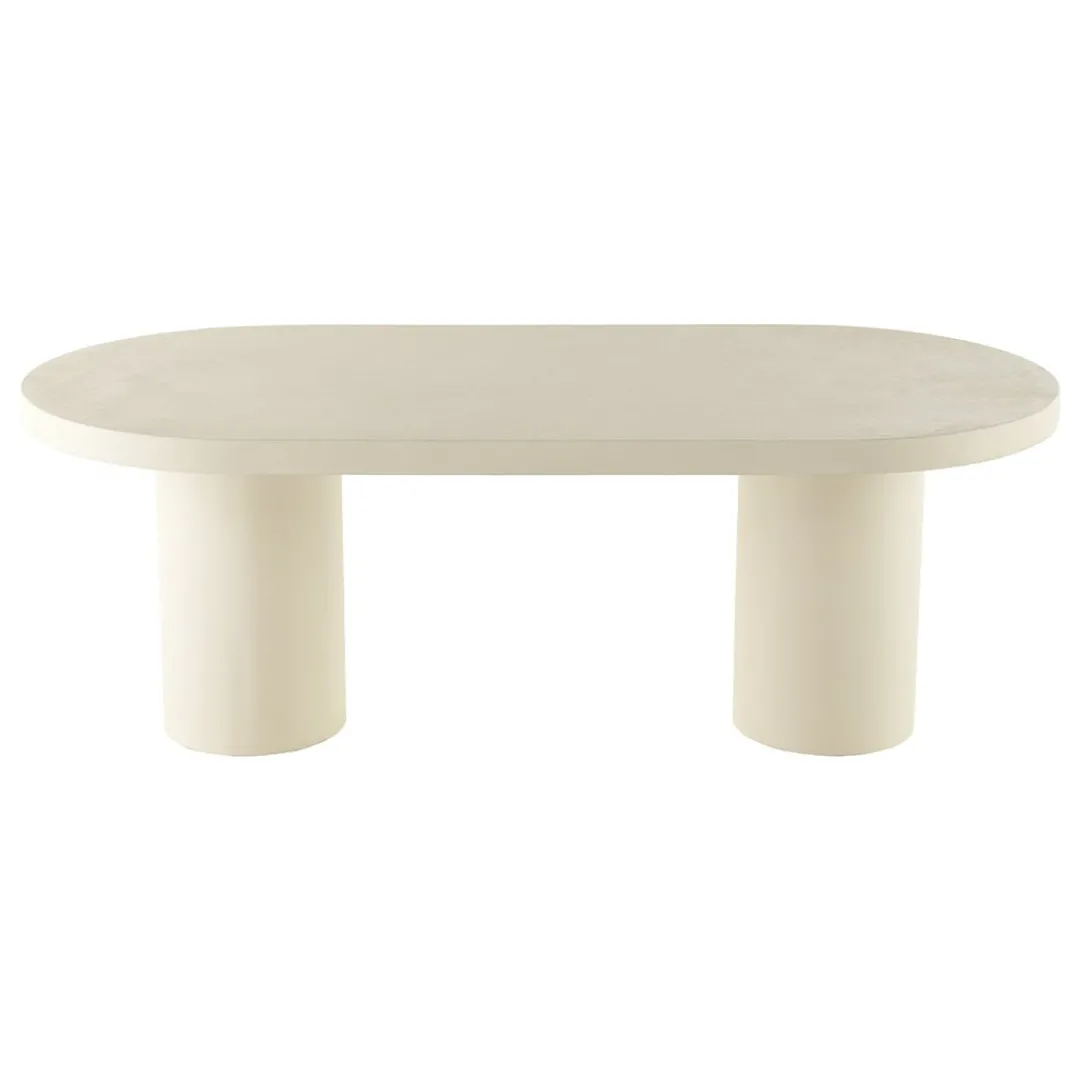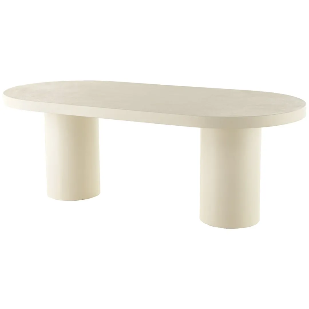 Eettafel Savannah Capsule is een stijlvolle toevoeging aan je interieur. Het capsule gevormde blad en de twee stevige poten zijn volledig uitgevoerd in microcement en hebben een warme beige kleur. Dit geeft de tafel een eigentijdse en natuurlijke uitstraling die perfect past in moderne woonruimtes.