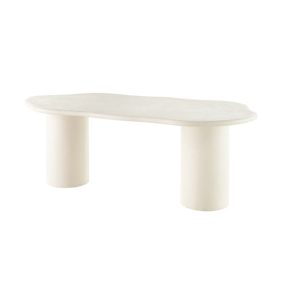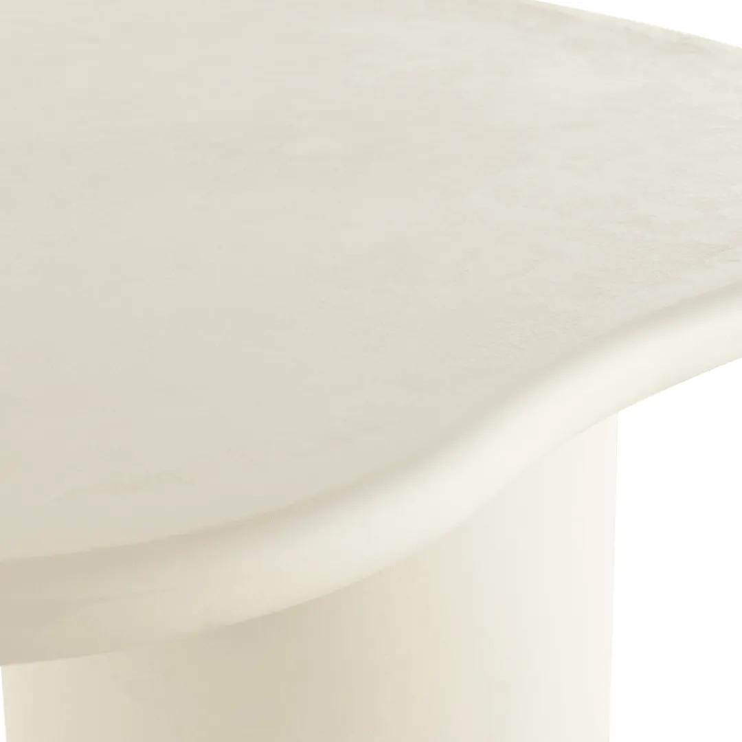 Eettafel Organisch Savannah is een elegante tafel die direct sfeer brengt in je eetkamer. Het ovale blad en de stevige voet zijn volledig uitgevoerd in microcement en afgewerkt in een zachte wit tint. Deze combinatie geeft de tafel een moderne, maar tegelijkertijd rustige uitstraling die mooi aansluit bij verschillende interieurstijlen.