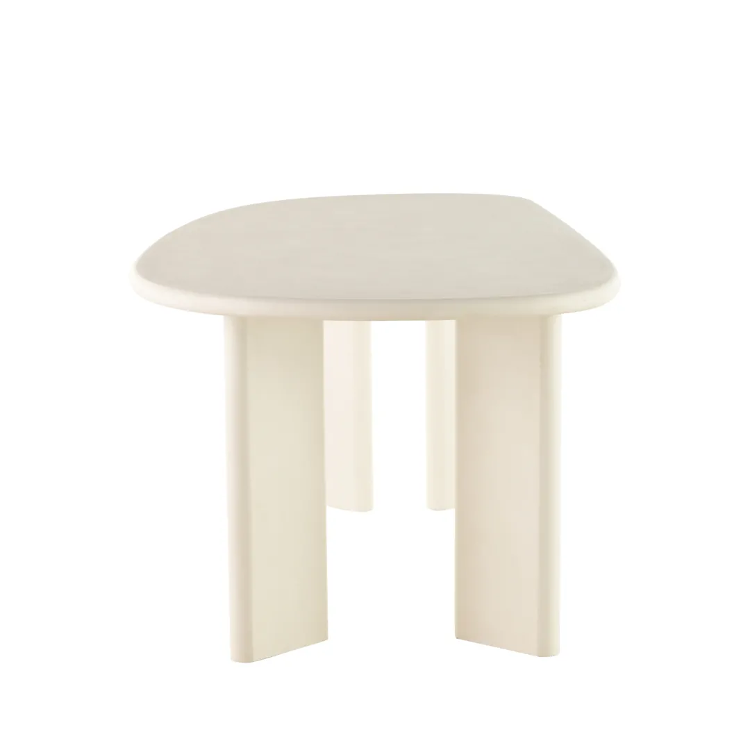 De Eettafel Savannah Organisch 210 cm is een stijlvolle toevoeging aan je interieur. Het organisch gevormde blad en de vier stevige poten zijn volledig uitgevoerd in hoogwaardig microcement met een strakke witte kleur. Dit geeft de tafel een moderne en verfijnde uitstraling die prachtig past in eigentijdse woonruimtes.