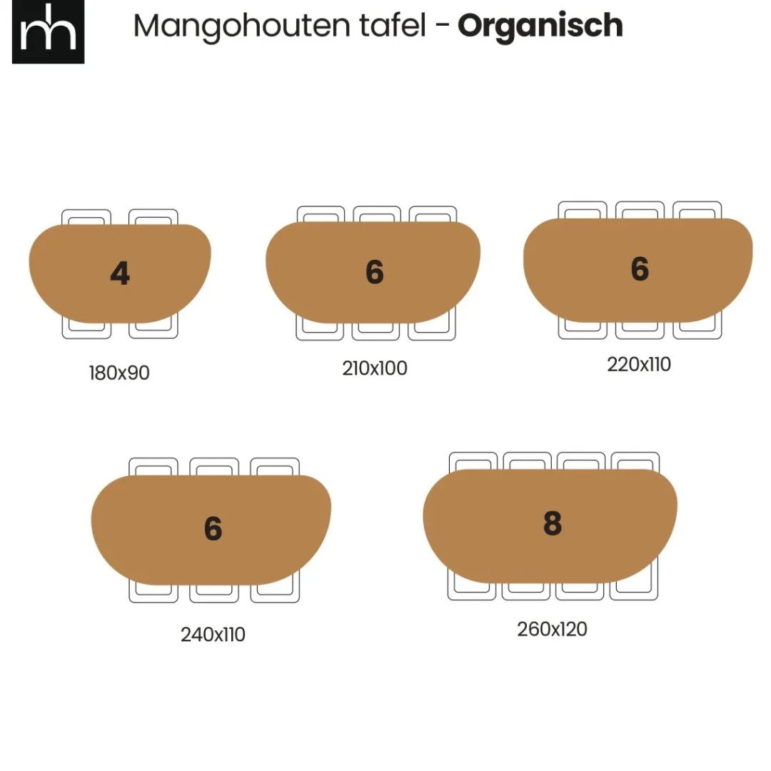 Met een lengte van 210 cm, een breedte van 100 cm en een hoogte van 75 cm biedt deze tafel ruim voldoende plaats voor gezellige diners met familie en vrienden. De vloeiende, organische vorm geeft je eetkamer een speels en uniek karakter.
