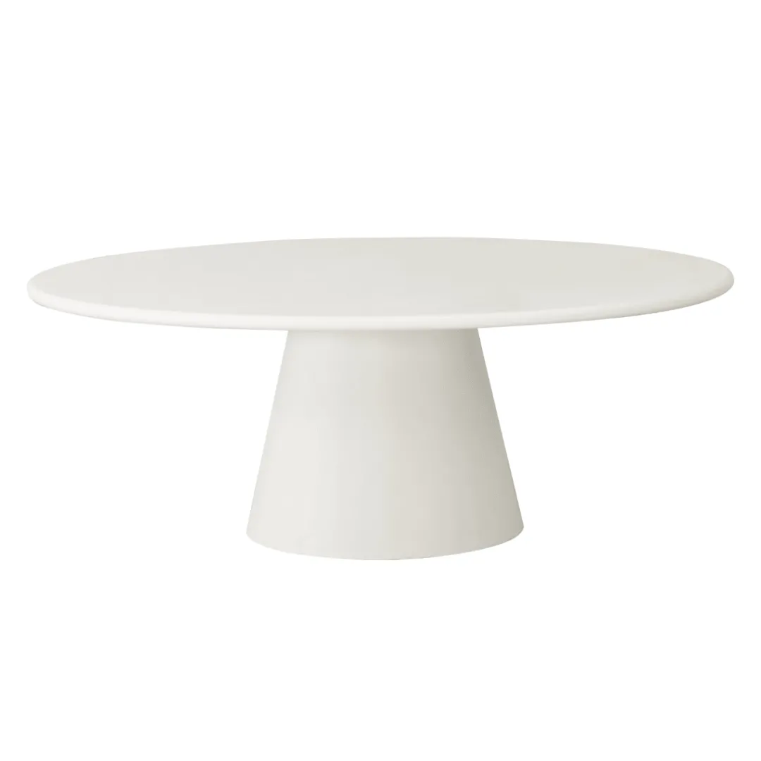 Eettafel Savannah Ovaal is een elegante tafel die direct sfeer brengt in je eetkamer. Het ovale blad en de stevige voet zijn volledig uitgevoerd in microcement en afgewerkt in een zachte wit tint. Deze combinatie geeft de tafel een moderne, maar tegelijkertijd rustige uitstraling die mooi aansluit bij verschillende interieurstijlen.