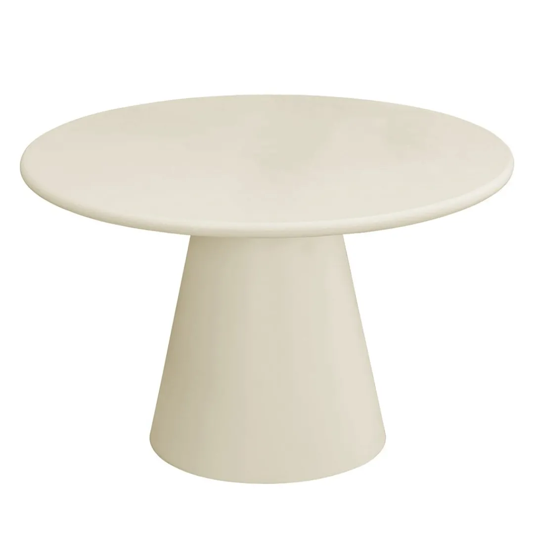 Eettafel Savannah is een echte eyecatcher in je interieur. Zowel het ronde blad als de stevige voet zijn volledig uitgevoerd in microcement en afgewerkt in een warme beige tint. Dit geeft de tafel een strakke, moderne uitstraling met een natuurlijke touch.