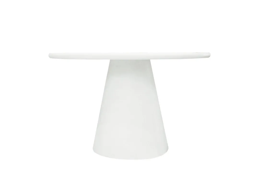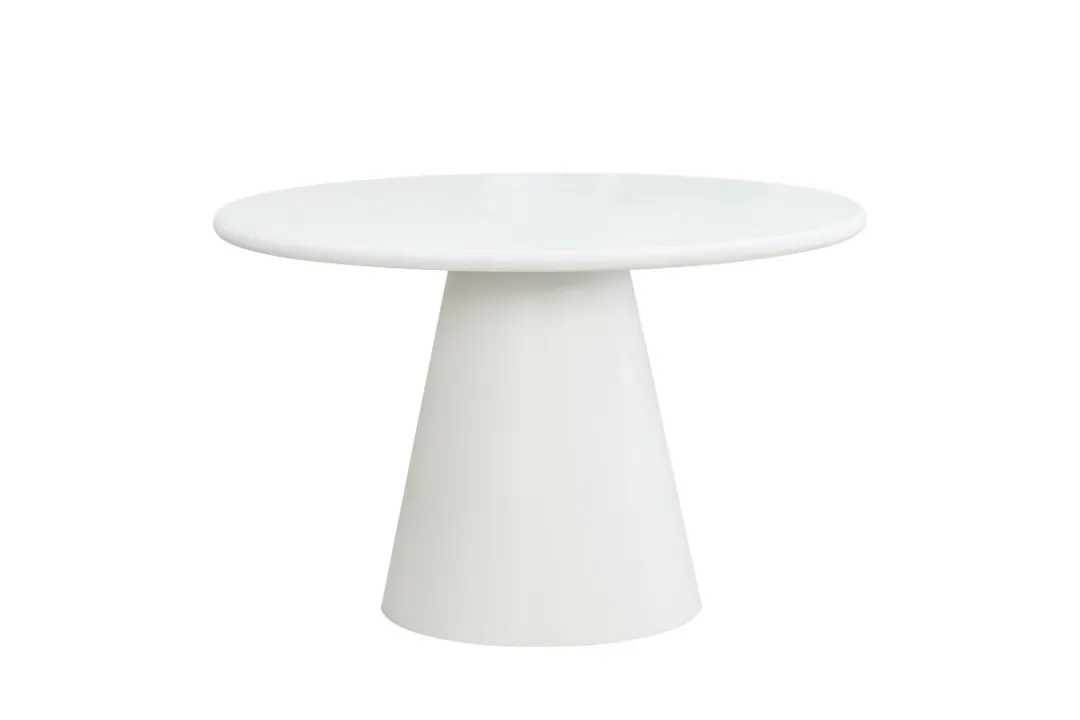 Eettafel Savannah is een echte eyecatcher in je interieur. Zowel het ronde blad als de stevige voet zijn volledig uitgevoerd in microcement en afgewerkt in een warme wit tint. Dit geeft de tafel een strakke, moderne uitstraling met een natuurlijke touch.