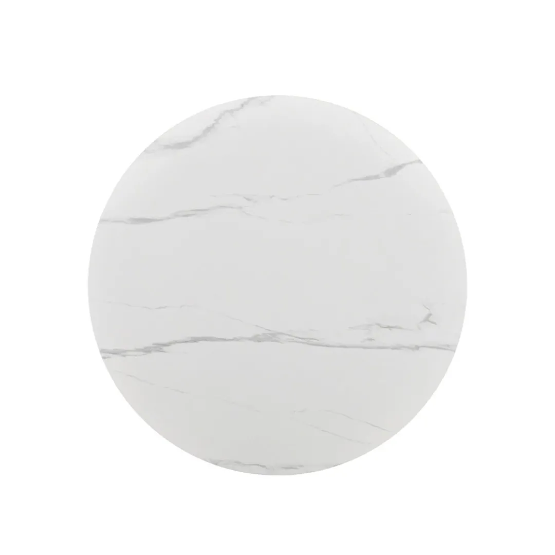 De Eettafel Santiago Rond 120 cm voegt een warme en moderne uitstraling toe aan je eetkamer. Het ronde tafelblad is vervaardigd uit bruin woodvineer en afgewerkt met een elegante witte marmerlaag. De combinatie van rijke houttinten en het frisse marmer geeft de tafel een luxe en evenwichtige uitstraling.