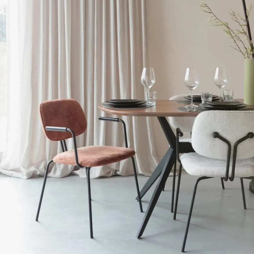 De fauteuil Astrid Terra Jacob Jenzens brengt een warme en rustgevende sfeer in je interieur dankzij de zachte terra-kleur. De combinatie van hoogwaardige stof en een stevig metalen frame straalt elegantie en duurzaamheid uit, waardoor deze fauteuil moeiteloos past in verschillende woonstijlen, van industrieel tot Scandinavisch.