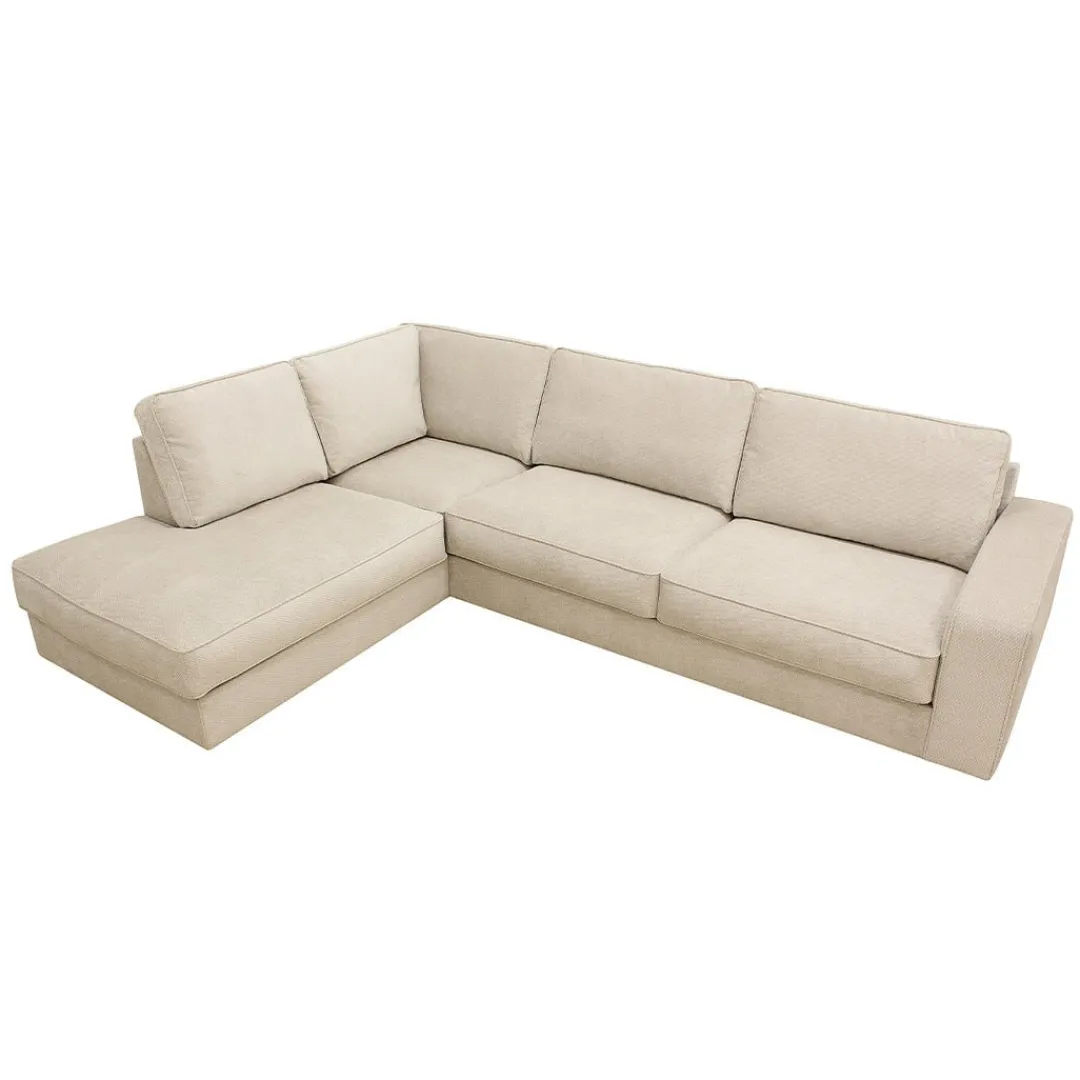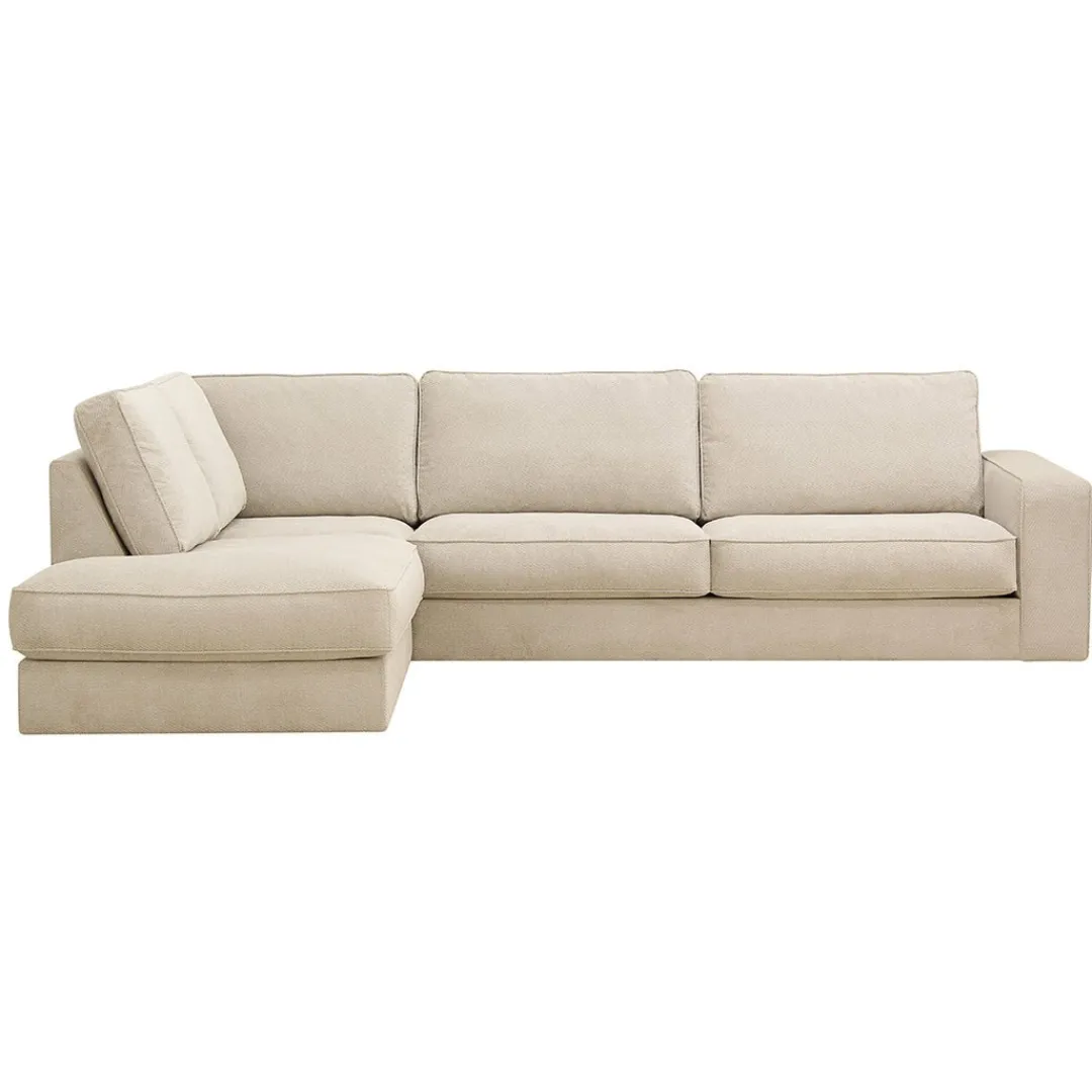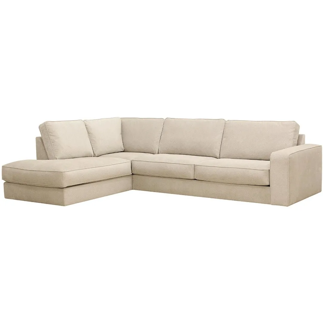 Hoekbank Colton 4-zits Links Crème is een ruime en comfortabele bank die perfect past in een modern interieur. De bank is bekleed met zachte Vinci-stof in een crèmekleur, wat zorgt voor een rustige en tijdloze uitstraling.