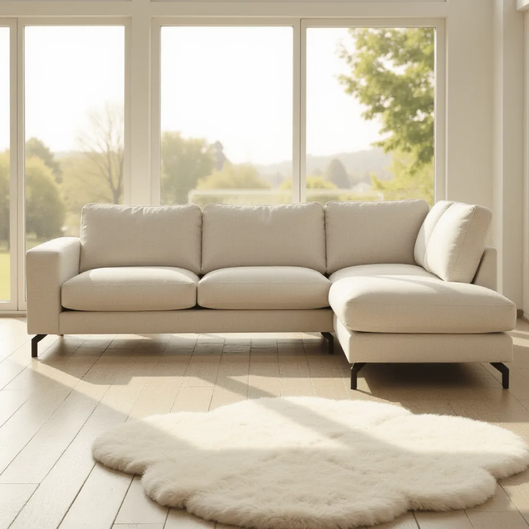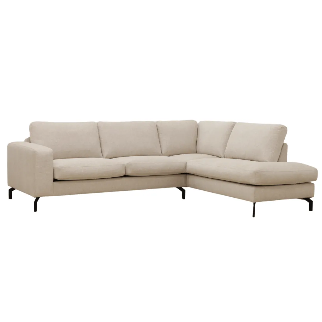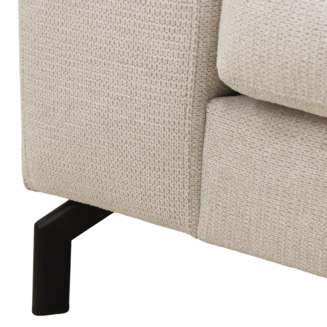 De 4-zits hoekbank Nora rechts in crème is een stijlvolle en comfortabele toevoeging aan je woonkamer. De zachte crèmekleurige bekleding straalt rust en elegantie uit, waardoor de bank moeiteloos past binnen diverse interieurstijlen, van modern tot klassiek.