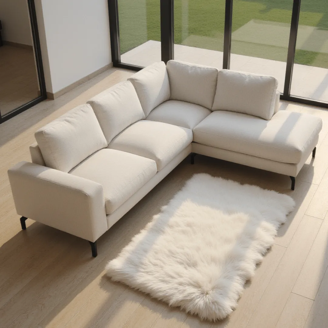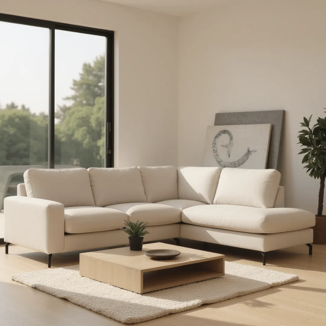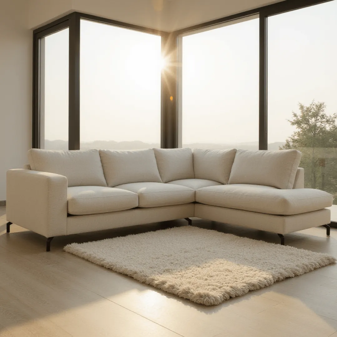 De 4-zits hoekbank Nora rechts in crème is een stijlvolle en comfortabele toevoeging aan je woonkamer. De zachte crèmekleurige bekleding straalt rust en elegantie uit, waardoor de bank moeiteloos past binnen diverse interieurstijlen, van modern tot klassiek.